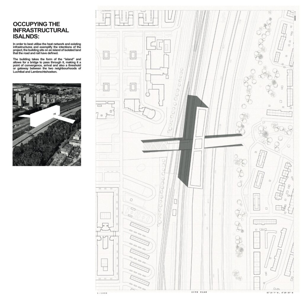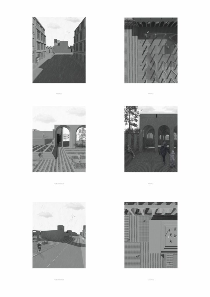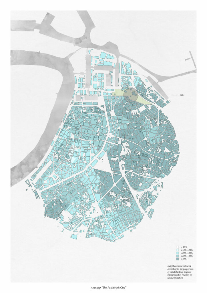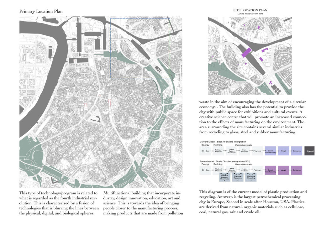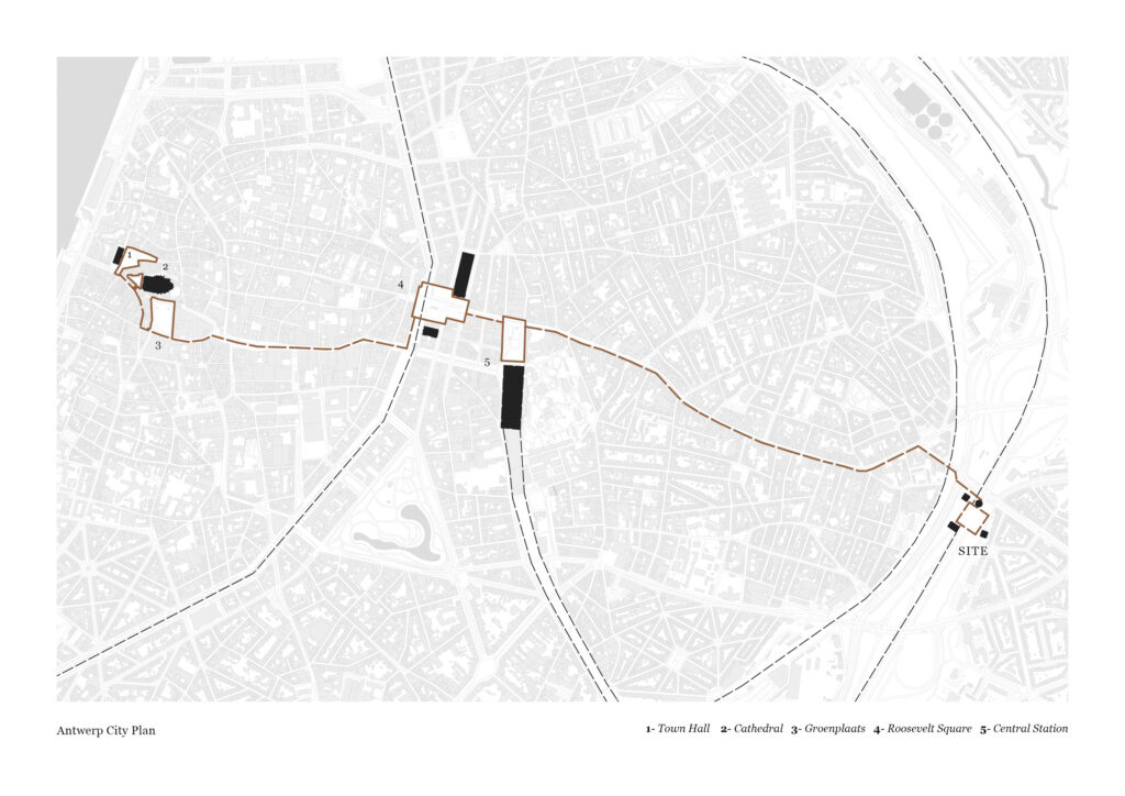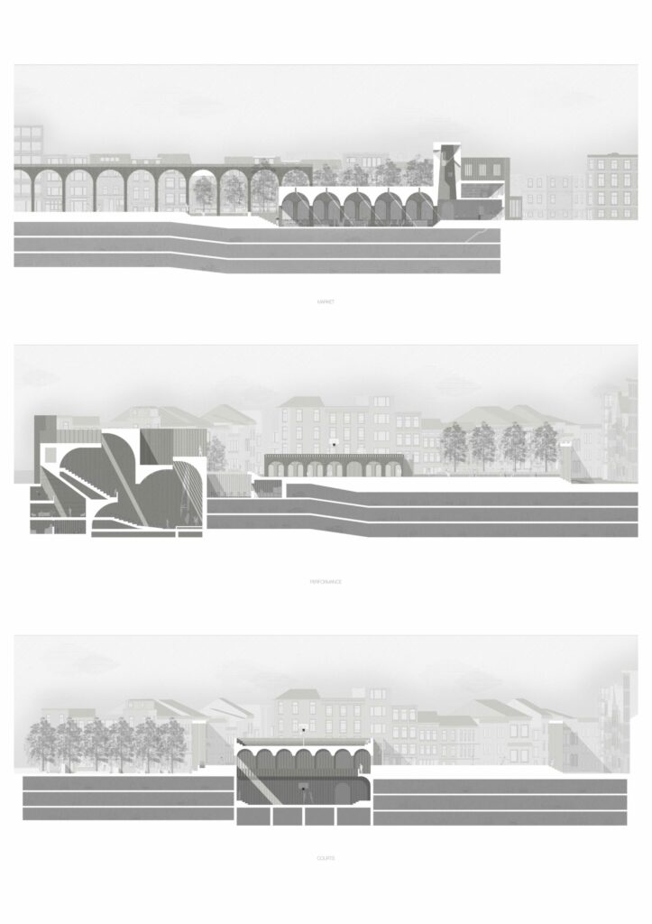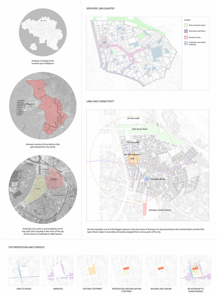 ‘Scaffolding the City’ is a project which inhabits underutilized land across Antwerp. The spaces are filled with an unorthodox architectural language which speaks of informality, community engagement and adaptability. As an inhabitable scaffolding form, the proposal takes on a series of incisions into the urban landscape where normality is fragmented and boundaries, physically and politically, can be breached. The scaffolding incisions will inhabit gap sites across the city for the duration that the site is vacant or until thegrowth of a permanent sub-district community infrastructure. In its lifespan the structure will facilitate a socially stimulating landscape for the sub-districts of Antwerp City. The programme for this is based on key strategies which encourage the growth of a politically and culturally stimulated programme: Exchange, Peoples Forum, Knowledge, Cultivate and Play.