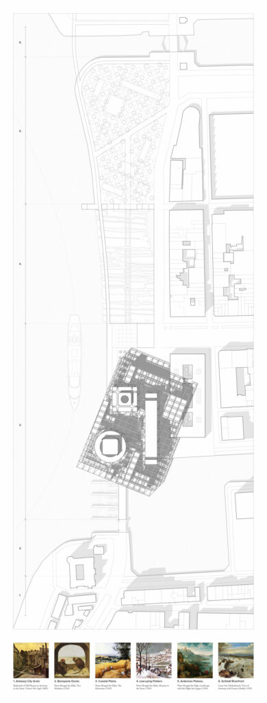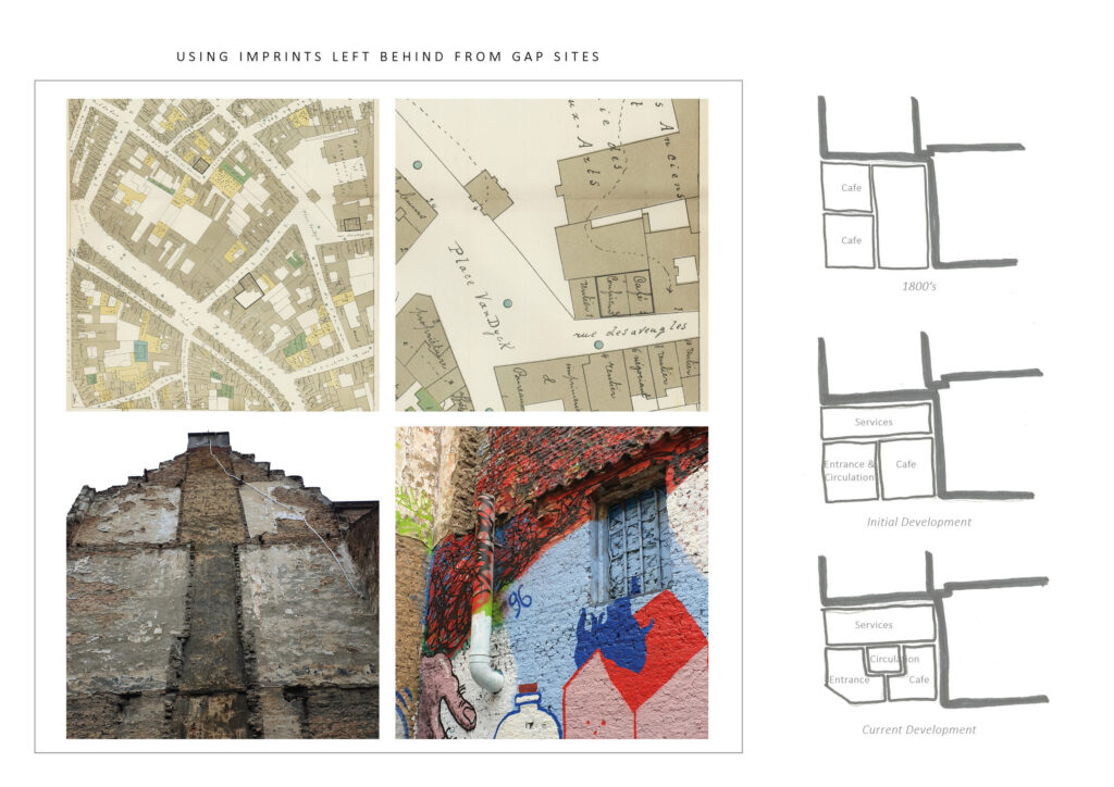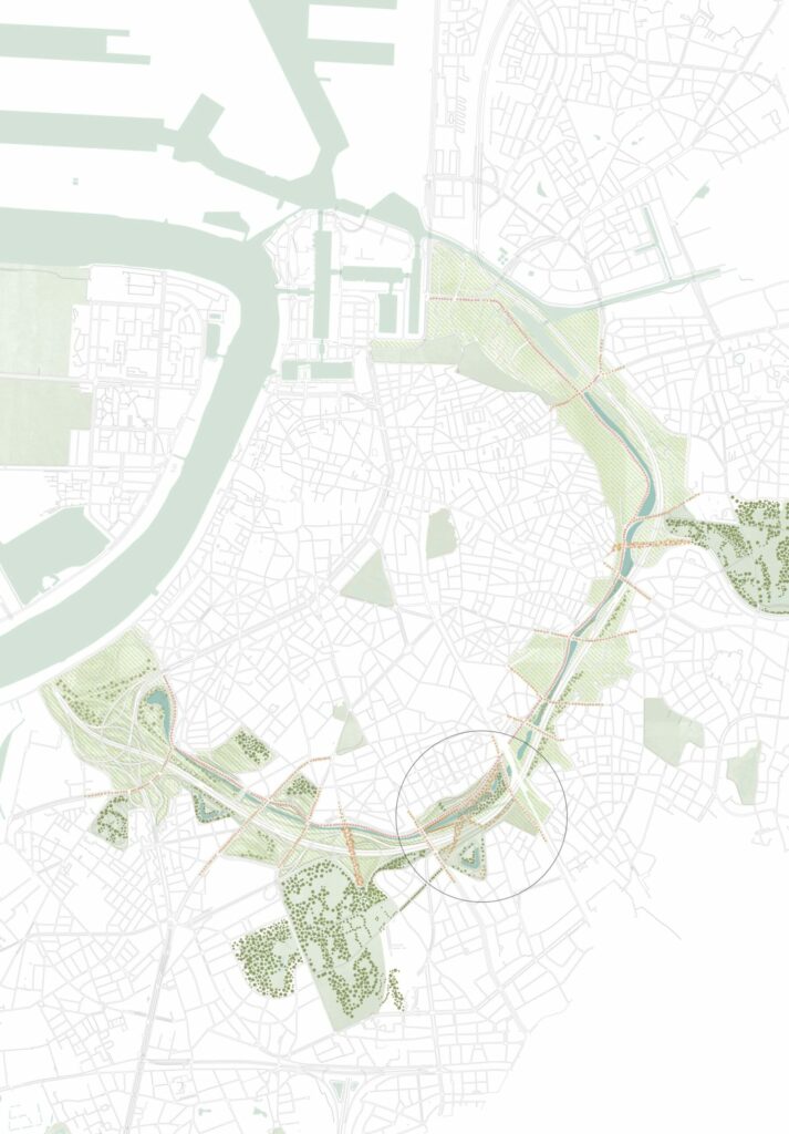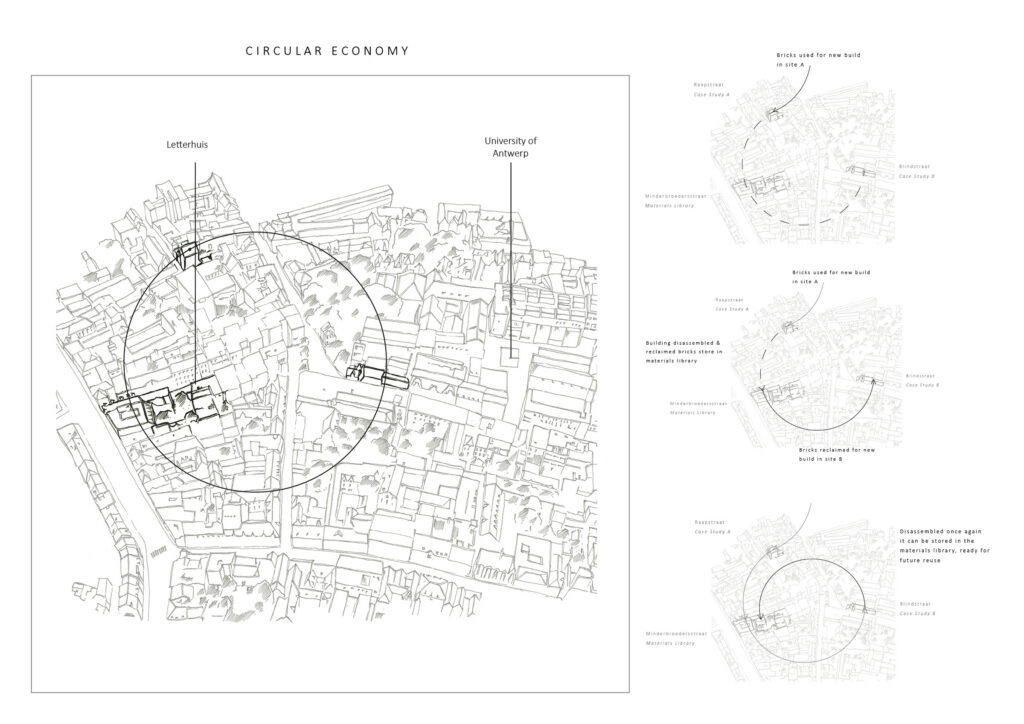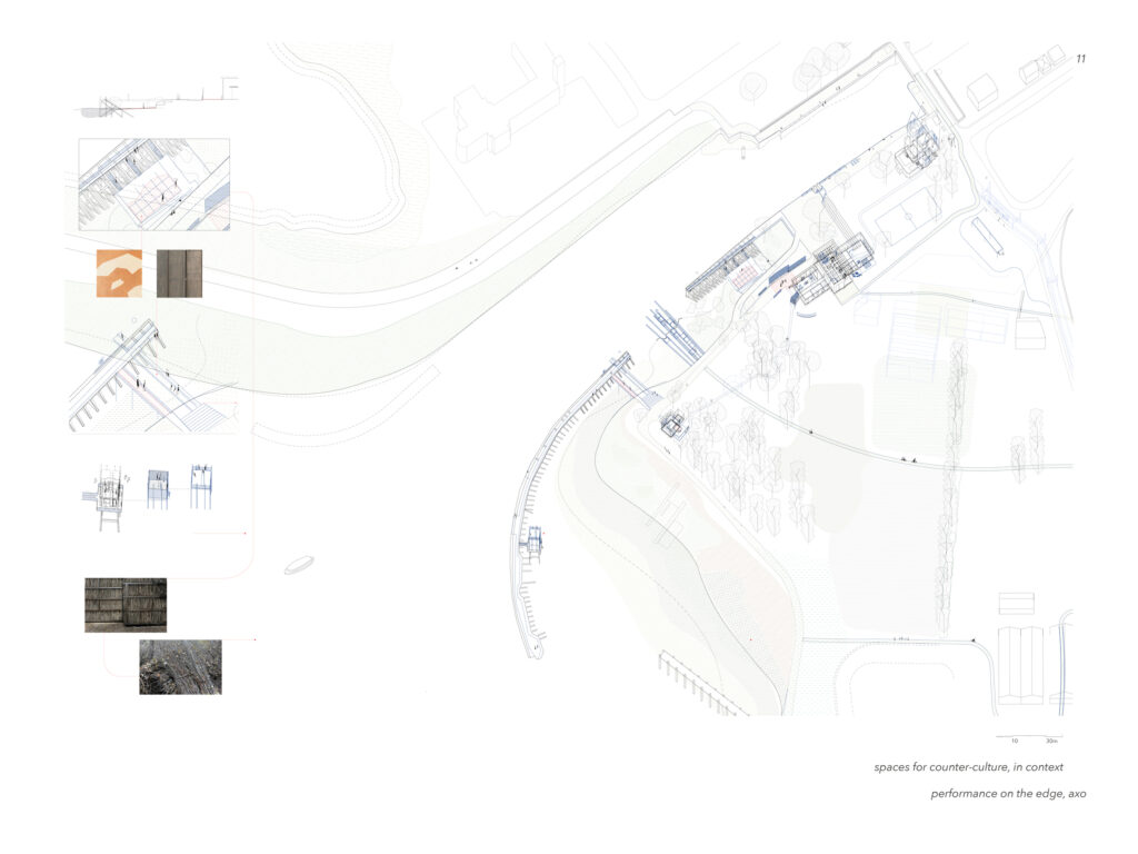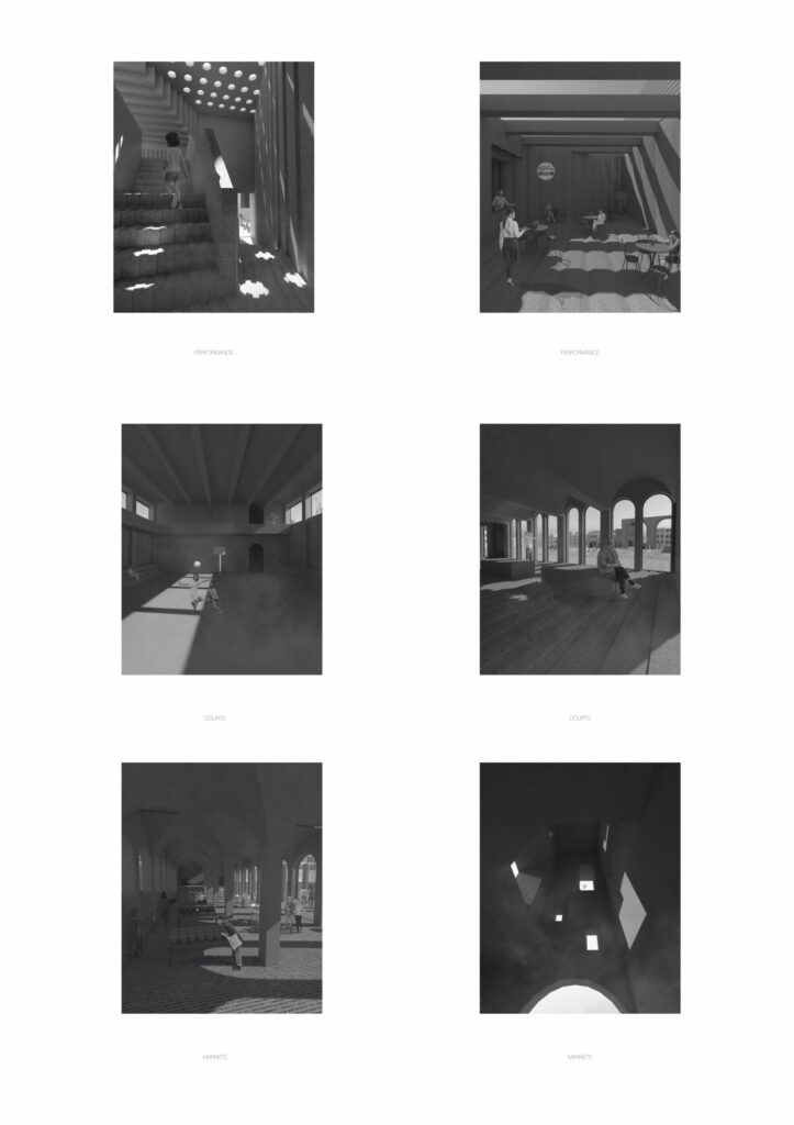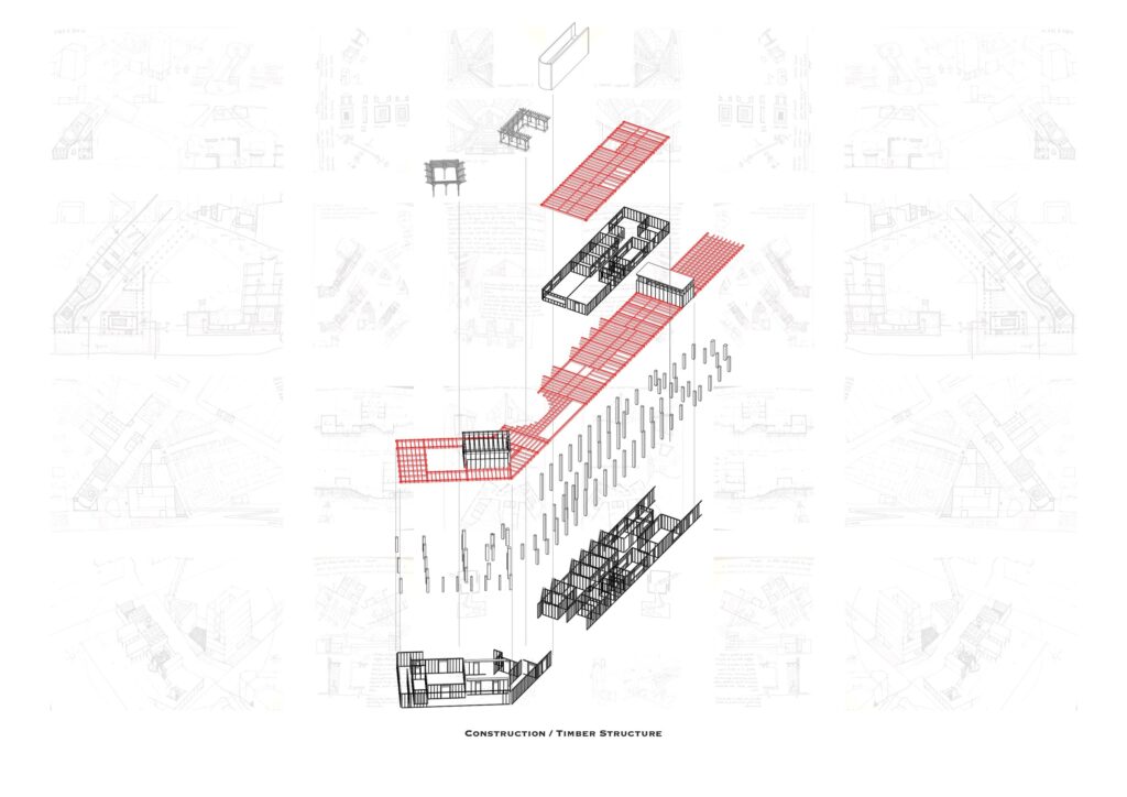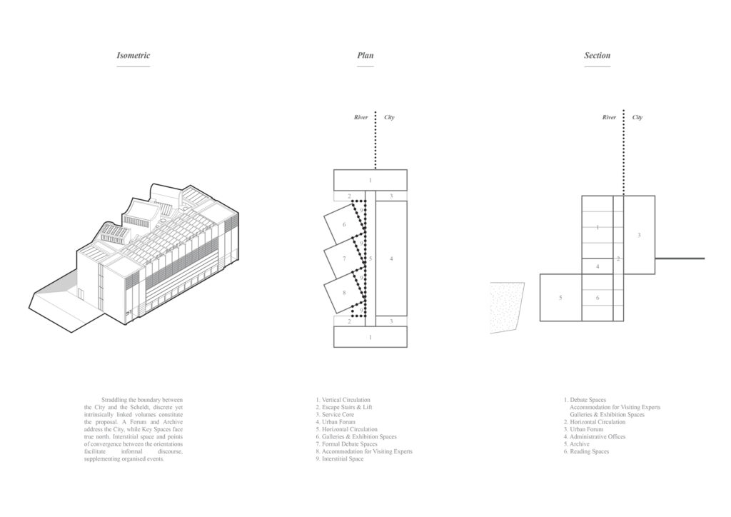 ‘Scaffolding the City’ is a project which inhabits underutilized land across Antwerp. The spaces are filled with an unorthodox architectural language which speaks of informality, community engagement and adaptability. As an inhabitable scaffolding form, the proposal takes on a series of incisions into the urban landscape where normality is fragmented and boundaries, physically and politically, can be breached. The scaffolding incisions will inhabit gap sites across the city for the duration that the site is vacant or until thegrowth of a permanent sub-district community infrastructure. In its lifespan the structure will facilitate a socially stimulating landscape for the sub-districts of Antwerp City. The programme for this is based on key strategies which encourage the growth of a politically and culturally stimulated programme: Exchange, Peoples Forum, Knowledge, Cultivate and Play.