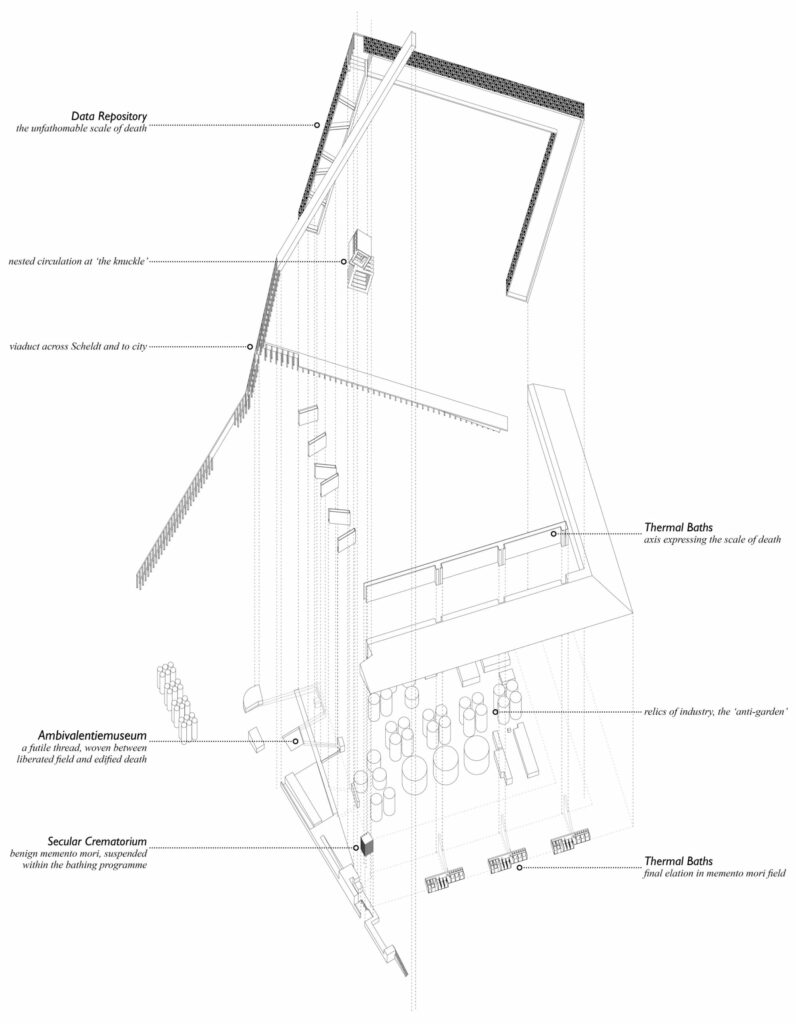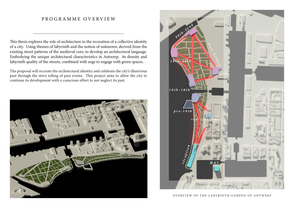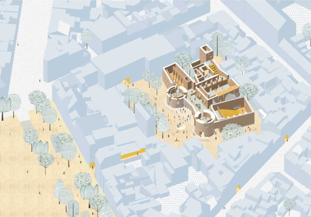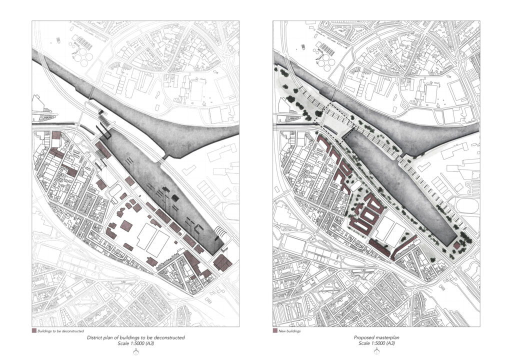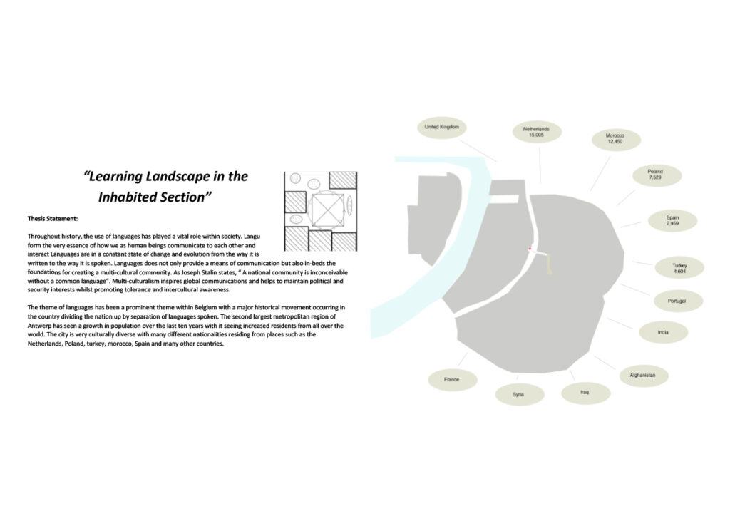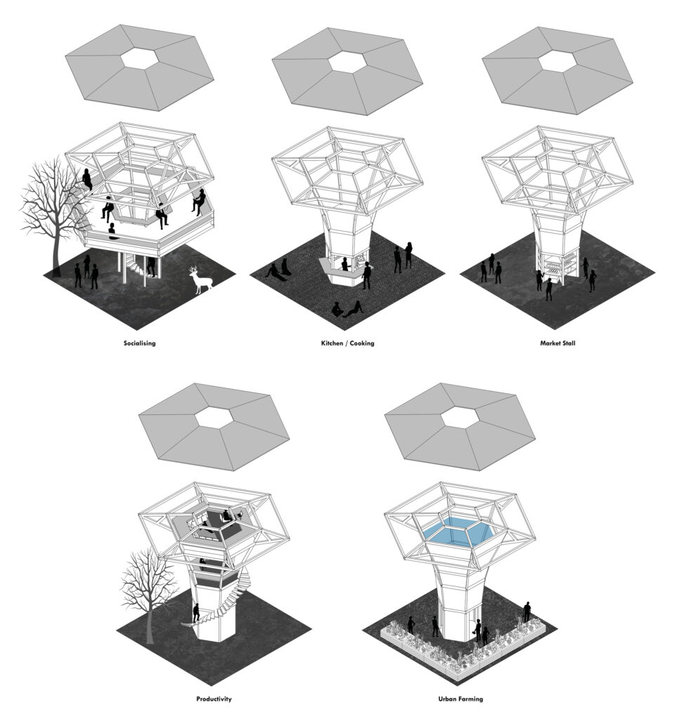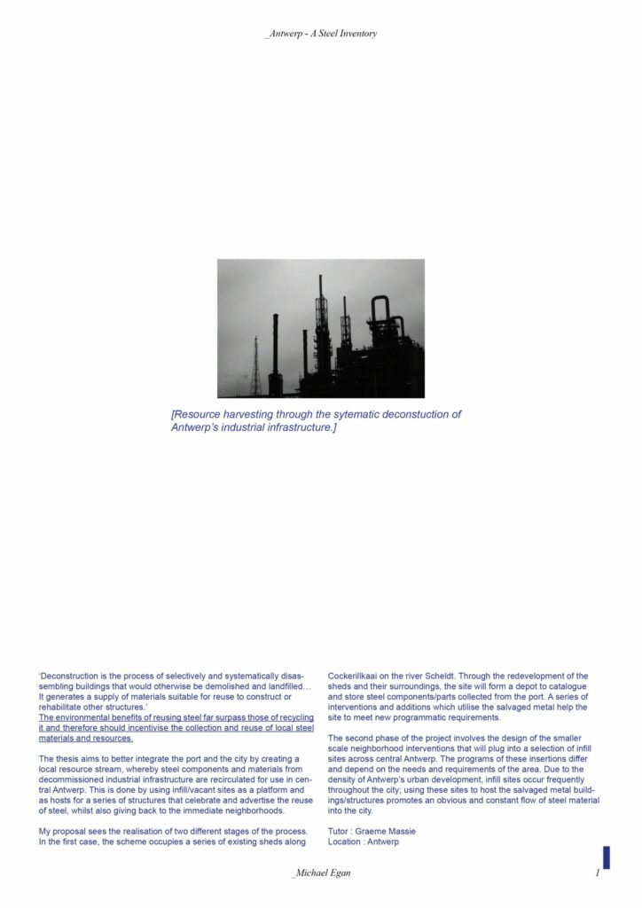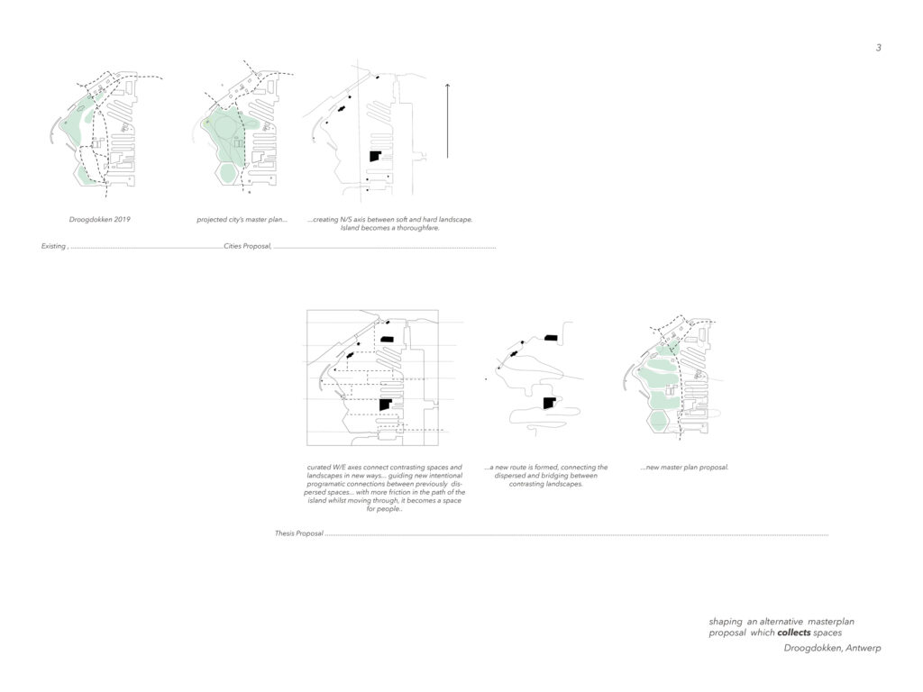 ‘Scaffolding the City’ is a project which inhabits underutilized land across Antwerp. The spaces are filled with an unorthodox architectural language which speaks of informality, community engagement and adaptability. As an inhabitable scaffolding form, the proposal takes on a series of incisions into the urban landscape where normality is fragmented and boundaries, physically and politically, can be breached. The scaffolding incisions will inhabit gap sites across the city for the duration that the site is vacant or until thegrowth of a permanent sub-district community infrastructure. In its lifespan the structure will facilitate a socially stimulating landscape for the sub-districts of Antwerp City. The programme for this is based on key strategies which encourage the growth of a politically and culturally stimulated programme: Exchange, Peoples Forum, Knowledge, Cultivate and Play.