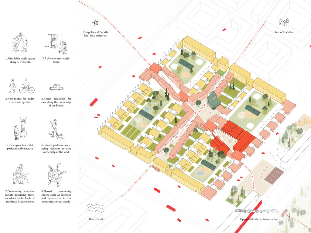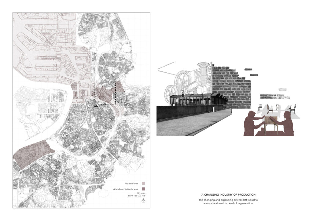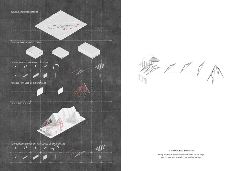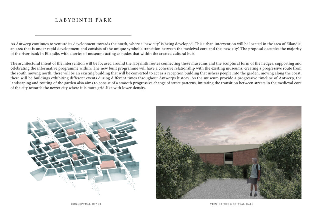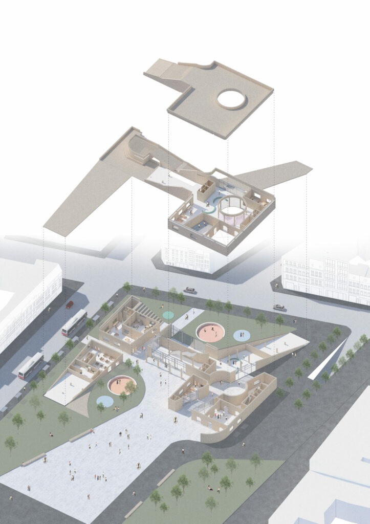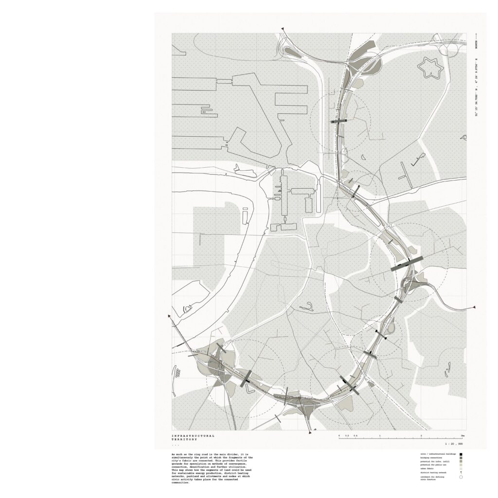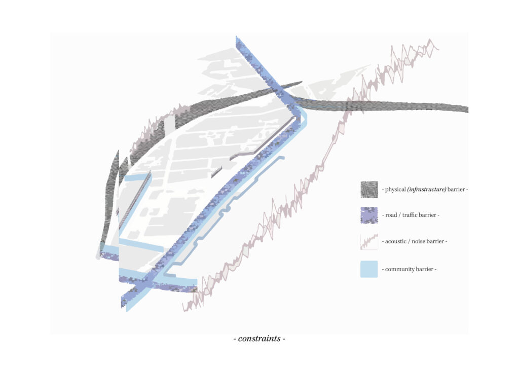 ‘Scaffolding the City’ is a project which inhabits underutilized land across Antwerp. The spaces are filled with an unorthodox architectural language which speaks of informality, community engagement and adaptability. As an inhabitable scaffolding form, the proposal takes on a series of incisions into the urban landscape where normality is fragmented and boundaries, physically and politically, can be breached. The scaffolding incisions will inhabit gap sites across the city for the duration that the site is vacant or until thegrowth of a permanent sub-district community infrastructure. In its lifespan the structure will facilitate a socially stimulating landscape for the sub-districts of Antwerp City. The programme for this is based on key strategies which encourage the growth of a politically and culturally stimulated programme: Exchange, Peoples Forum, Knowledge, Cultivate and Play.