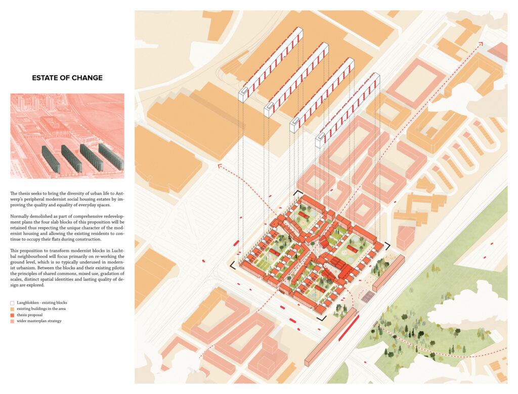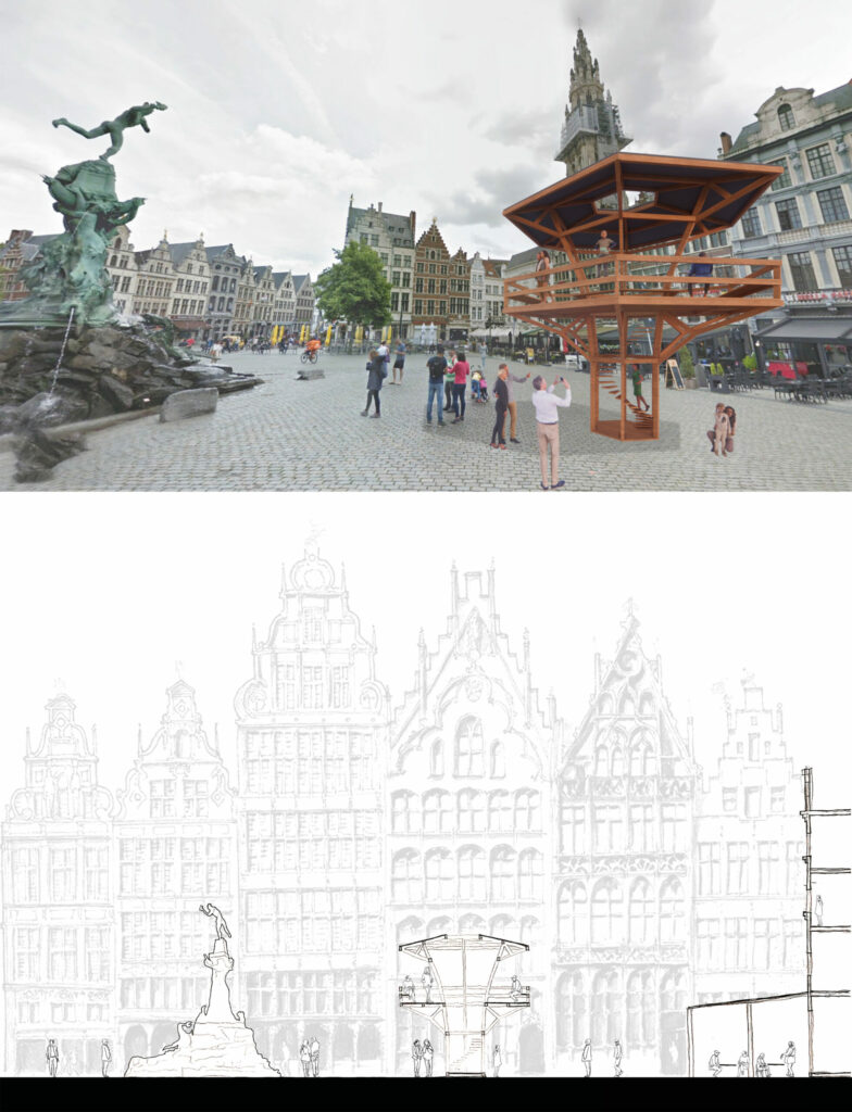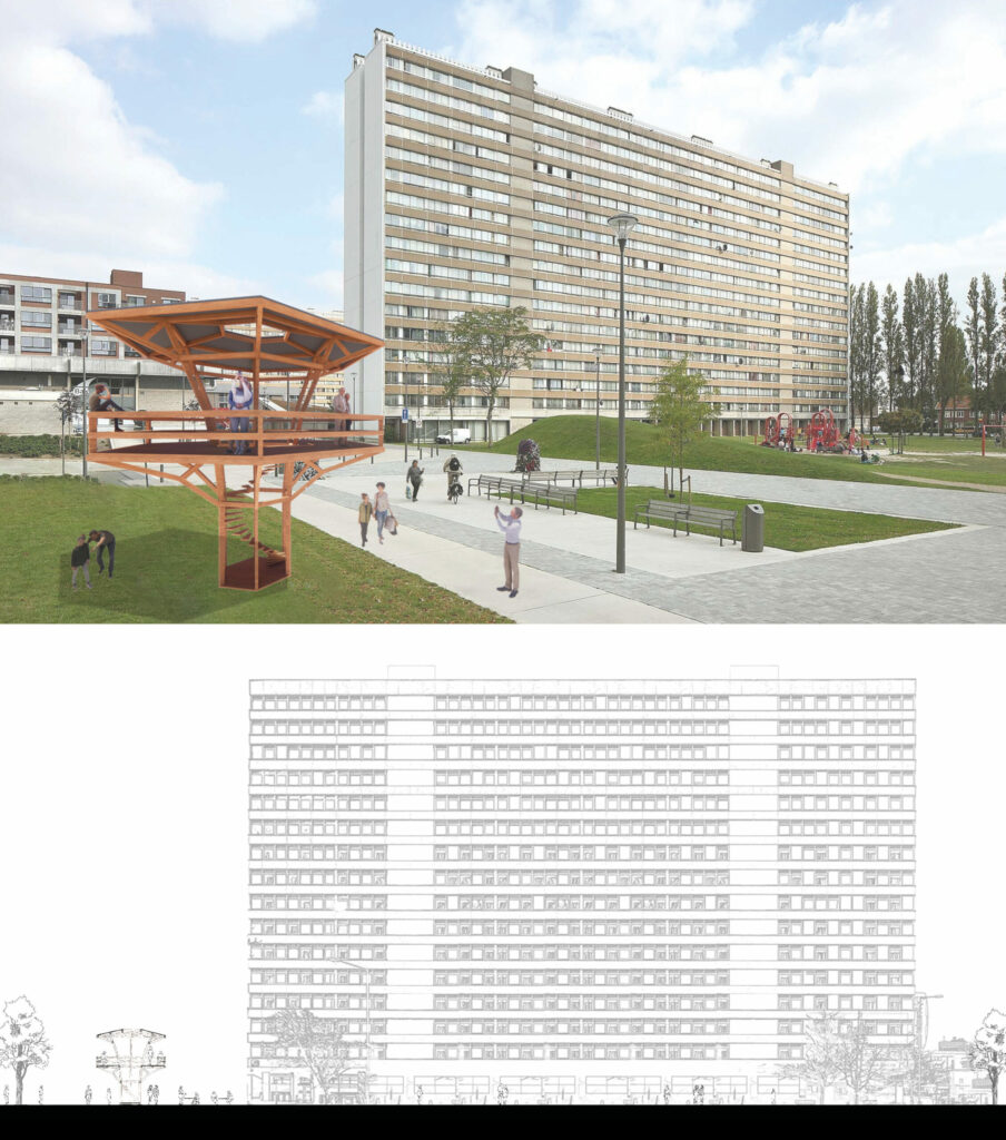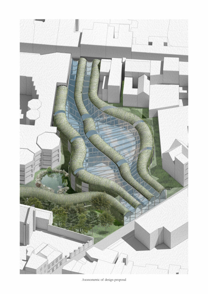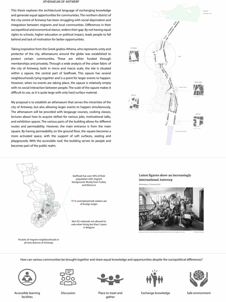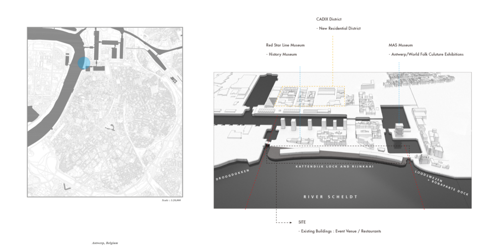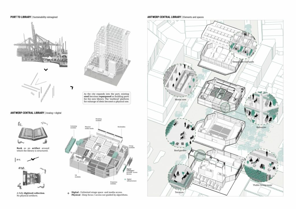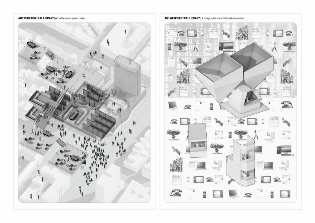 ‘Scaffolding the City’ is a project which inhabits underutilized land across Antwerp. The spaces are filled with an unorthodox architectural language which speaks of informality, community engagement and adaptability. As an inhabitable scaffolding form, the proposal takes on a series of incisions into the urban landscape where normality is fragmented and boundaries, physically and politically, can be breached. The scaffolding incisions will inhabit gap sites across the city for the duration that the site is vacant or until thegrowth of a permanent sub-district community infrastructure. In its lifespan the structure will facilitate a socially stimulating landscape for the sub-districts of Antwerp City. The programme for this is based on key strategies which encourage the growth of a politically and culturally stimulated programme: Exchange, Peoples Forum, Knowledge, Cultivate and Play.