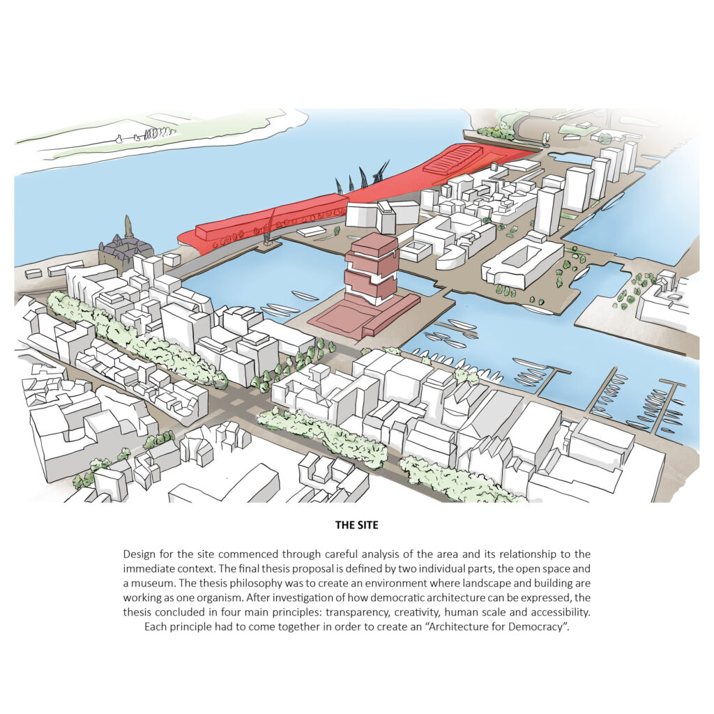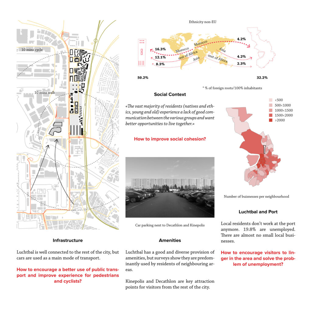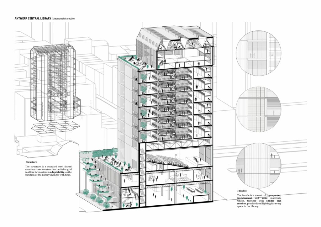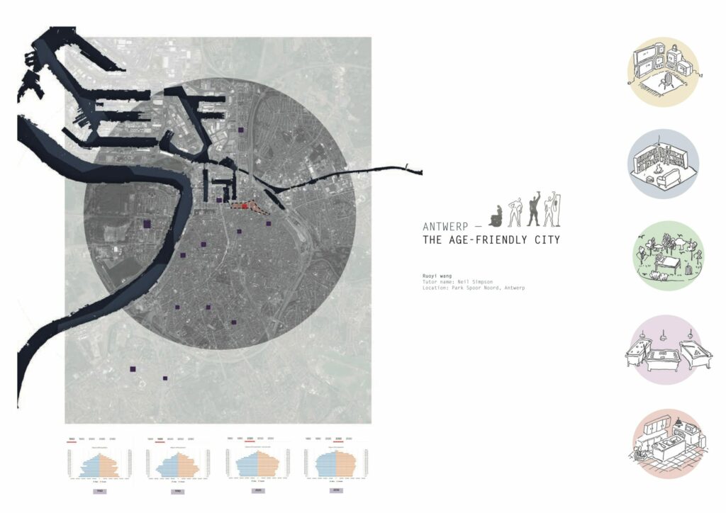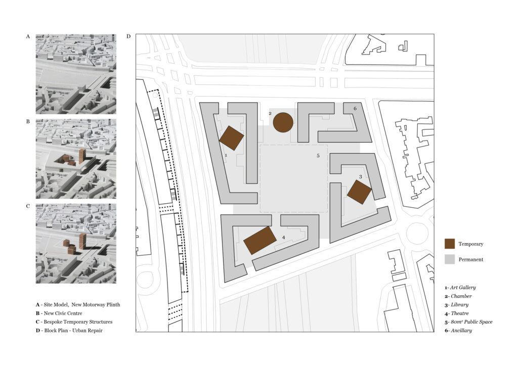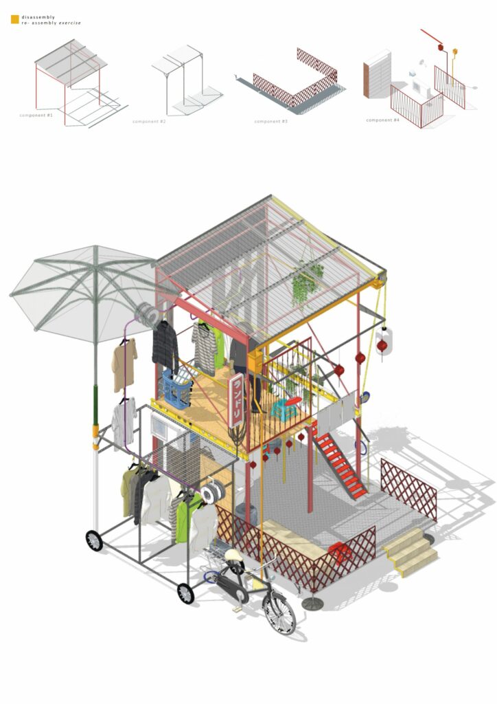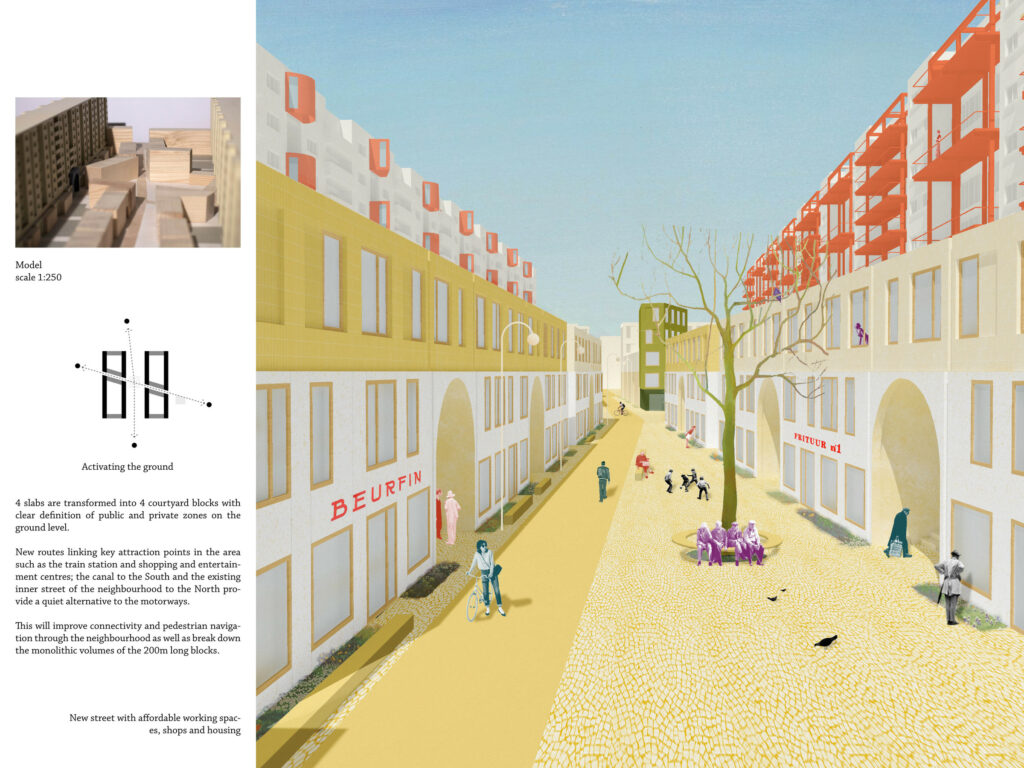 ‘Scaffolding the City’ is a project which inhabits underutilized land across Antwerp. The spaces are filled with an unorthodox architectural language which speaks of informality, community engagement and adaptability. As an inhabitable scaffolding form, the proposal takes on a series of incisions into the urban landscape where normality is fragmented and boundaries, physically and politically, can be breached. The scaffolding incisions will inhabit gap sites across the city for the duration that the site is vacant or until thegrowth of a permanent sub-district community infrastructure. In its lifespan the structure will facilitate a socially stimulating landscape for the sub-districts of Antwerp City. The programme for this is based on key strategies which encourage the growth of a politically and culturally stimulated programme: Exchange, Peoples Forum, Knowledge, Cultivate and Play.
