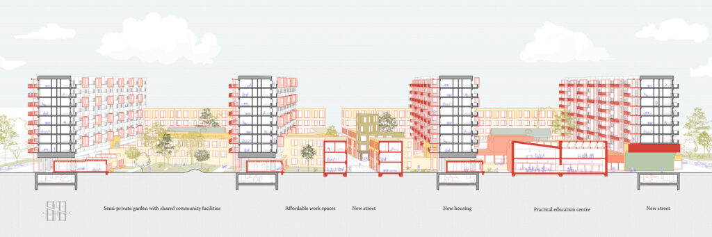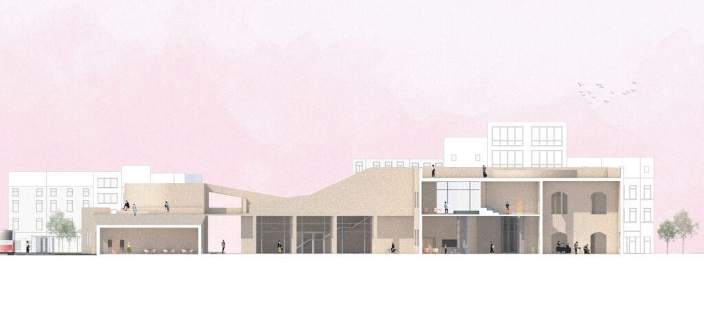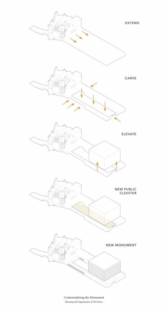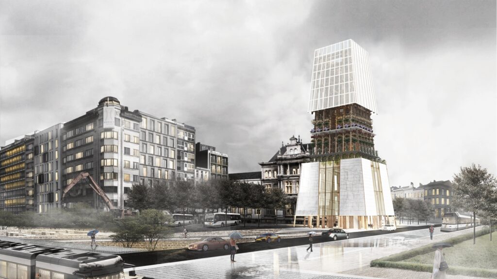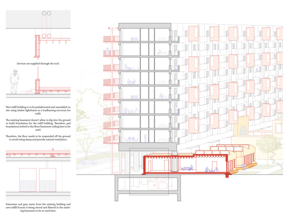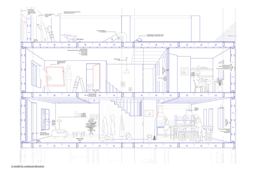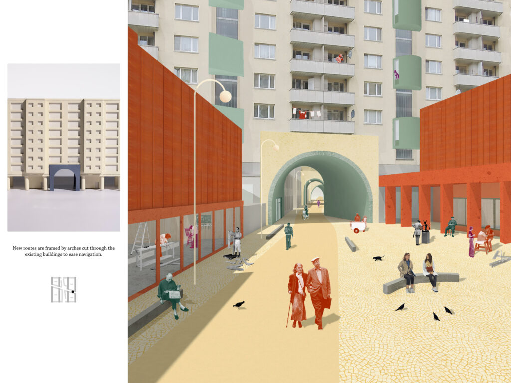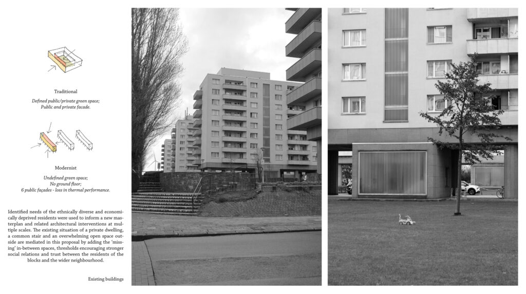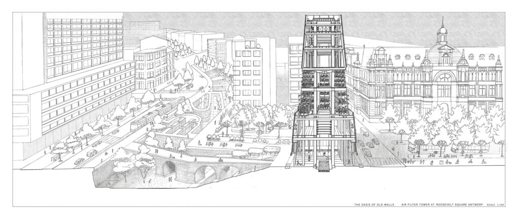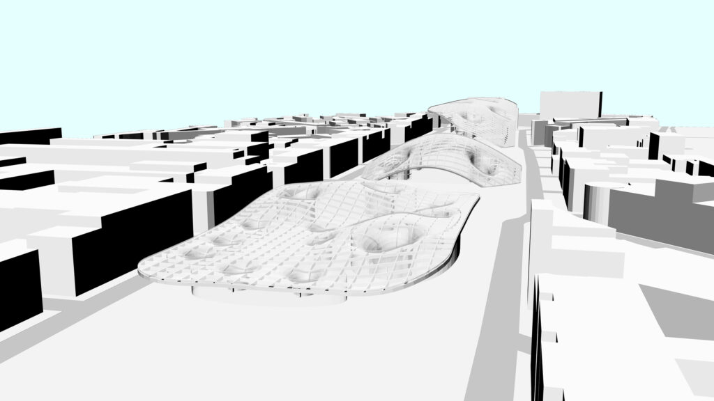 ‘Scaffolding the City’ is a project which inhabits underutilized land across Antwerp. The spaces are filled with an unorthodox architectural language which speaks of informality, community engagement and adaptability. As an inhabitable scaffolding form, the proposal takes on a series of incisions into the urban landscape where normality is fragmented and boundaries, physically and politically, can be breached. The scaffolding incisions will inhabit gap sites across the city for the duration that the site is vacant or until thegrowth of a permanent sub-district community infrastructure. In its lifespan the structure will facilitate a socially stimulating landscape for the sub-districts of Antwerp City. The programme for this is based on key strategies which encourage the growth of a politically and culturally stimulated programme: Exchange, Peoples Forum, Knowledge, Cultivate and Play.