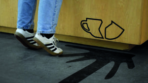 As part of a brief exploring the art of Chindogu (objects designed for a specific individual need that would in practicality serve no real use), I developed a set of site specific vinyl signage. Inspired by Otl Aicher's signage system, I employed typical shapes, objects and figures found in common signage and began to manipulate their place in the environment, encouraging an ironic playfulness that causes the viewer to look again. The use of the Univers typeface offered a utilitarian and commonplace type to further subvert.