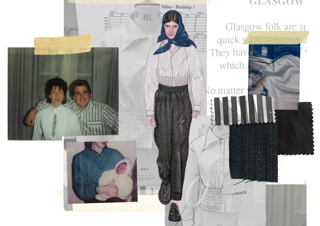 Pinstripe shirt with 70s collar and ruched waistband inspired by photographs of my parents in the 70s and 80s.