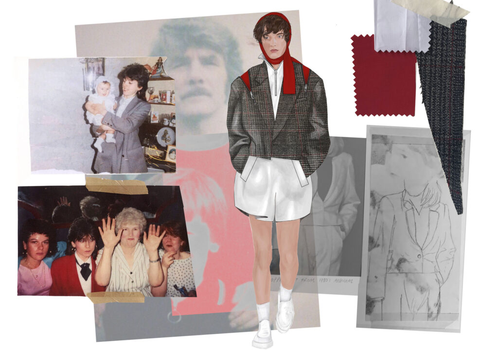 Cropped suit jacket inspired by photographs of my mum in the 80s with a white nylon romper.