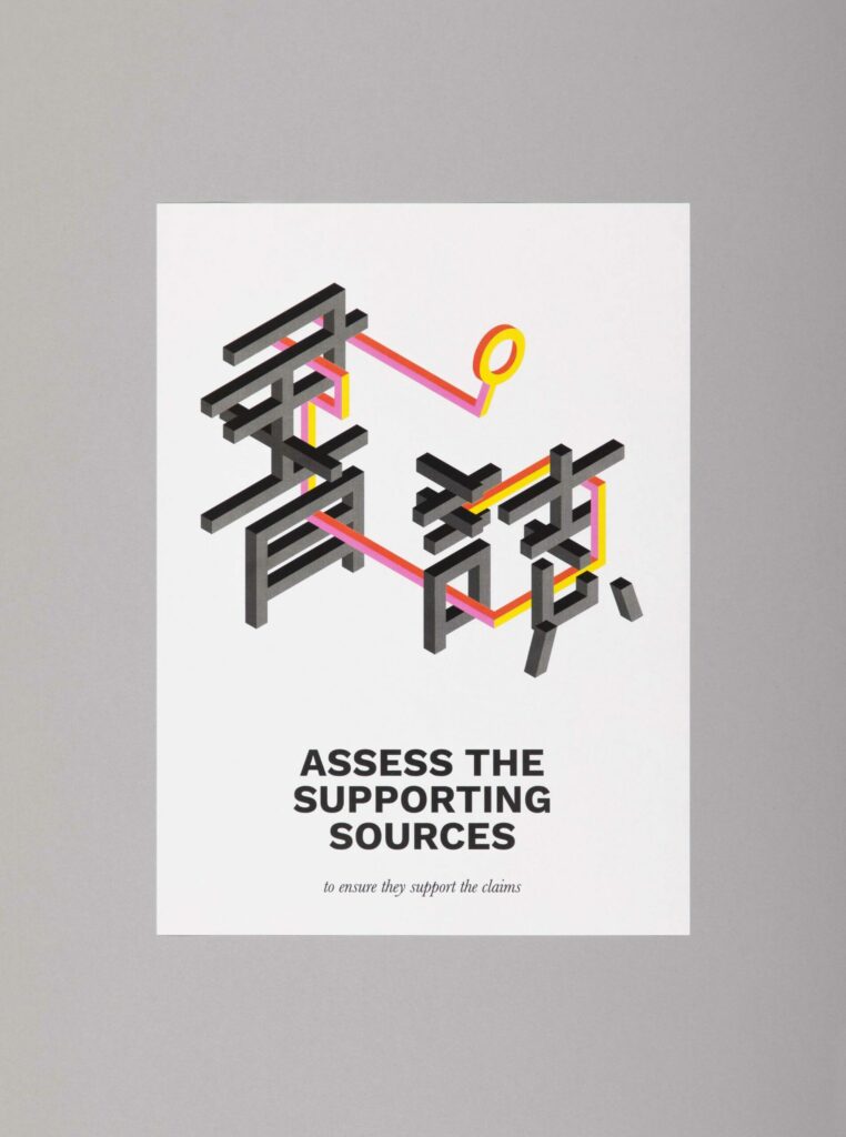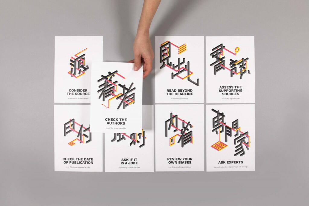 A series of isometric Kanji illustrations that follow the International Federation of Library Associations and Institutions' guide to recognising fake news, developed as an homage to the Japanese designer Shigeo Fukuda famous both for his activist designs, as well as his love for optical illusions. Each keyword was translated into Japanese, illustrated using an isometric grid and paired with an abstract illustration connecting the elements into a whole. Developed as part of the exchange to the Tokyo University of the Arts. For more project details and images, please visit www.zzzzarko.com.