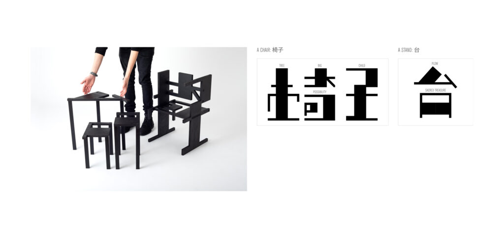 A series of typographic sculptures that communicate meaning through their form, based on the Japanese logographic Kanji written language. Building on Joseph Kosuth's 'One and three chairs' & Eric Ku's 'CHAIR', the project uses the form of product design to express communication design, translating meaning of Kanji characters beyond Japan through their appearance. The work was developed as part of the exchange to the Tokyo University of the Arts. For more project details and images, please visit www.zzzzarko.com.