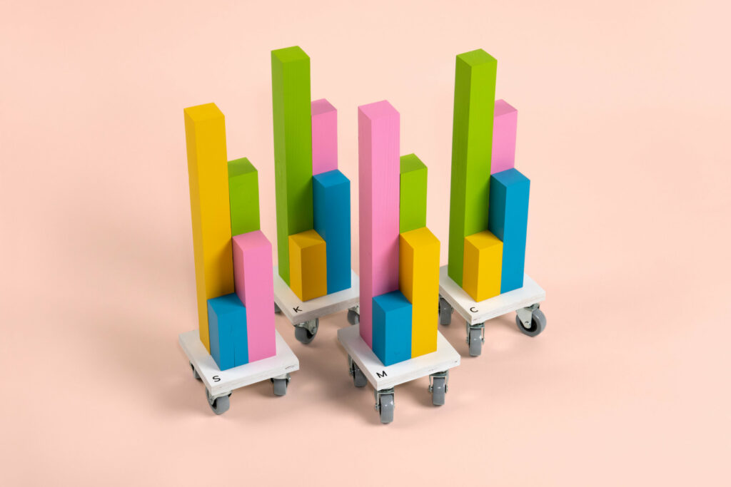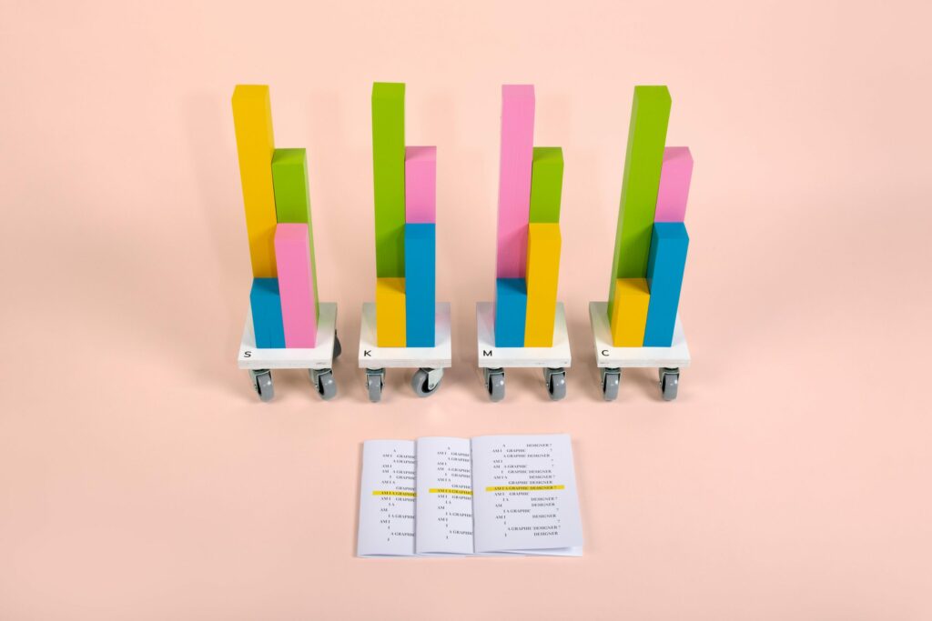 Research on the conceptual pillars of graphic design, documented in form of an 8,000 word essay that includes an interview with the GSA Com Des professors. The information collected from the interview was transformed into ‘data sculptures on wheels’, visualising each of the interviewee’s opinions on contemporary graphic design. The data was placed on wheels to allow for interactivity usually only reserved for digital spaces. For more project details and images, please visit www.zzzzarko.com.