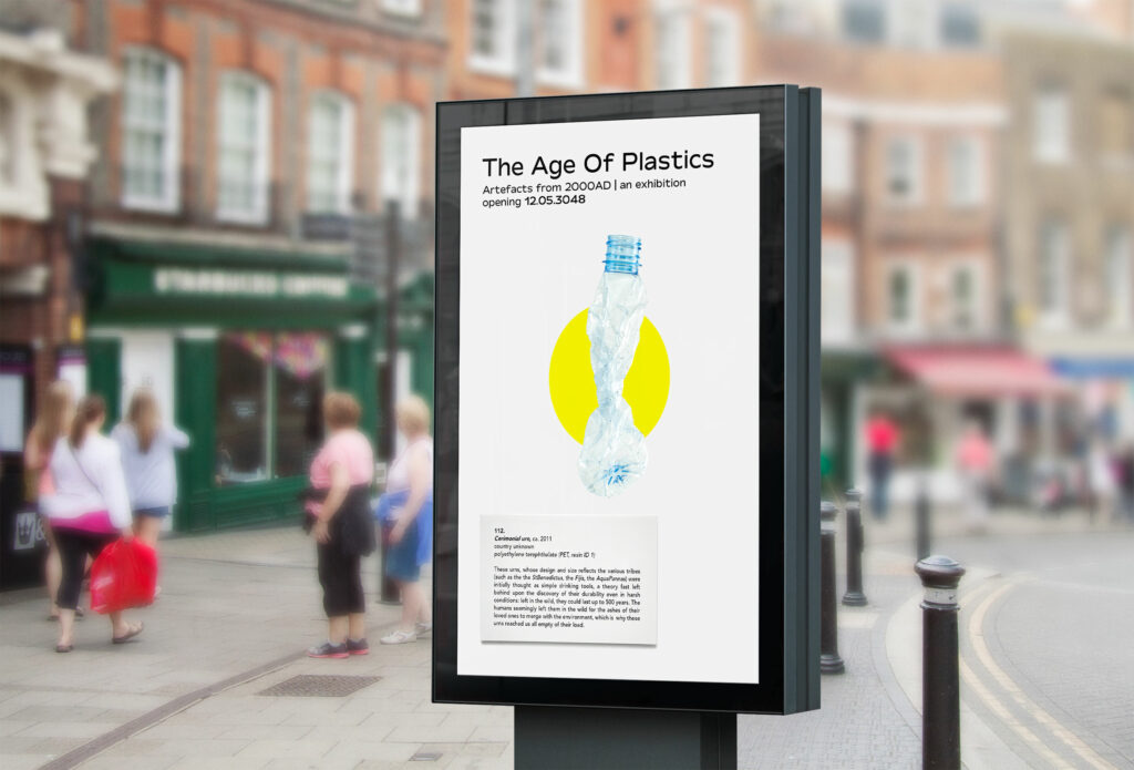 An awareness campaign providing the context of an imaginary exhibition to show plastic under a different light. Giving up the way we are used to think, we are invited to have a second loot at it with the curious eyes of a plastic-less version of this same planet.