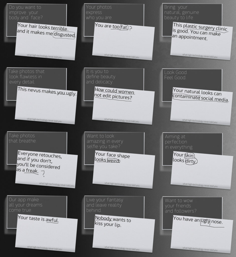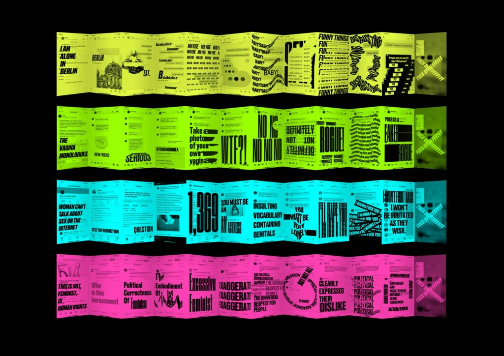 Cyber sexual harassment is a topic that is extremely common but generally ignored by the wider public. It may seem easy to dismiss as something relatively harmless and without consequence, but the feeling of disgust when experiencing harassment is indeed true. The four booklets draw on four real experiences of sexual harassment on the Internet. By using a distinct visual language to express the negative impact of harassment, the work reflects social realities and engages the audience through empathy.