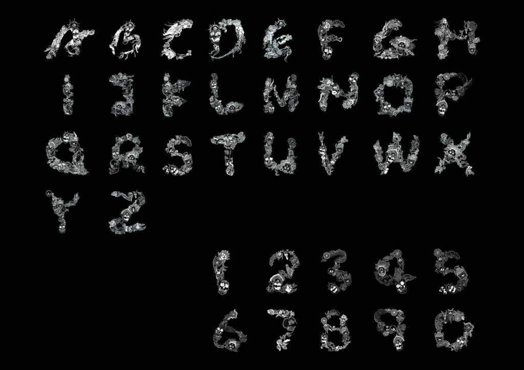 Using dreams—specifically my own surrounding death—as a starting point, a font was based on the Grim Reaper and its surround cultures. Elements of the font are constructed from the death culture in various regions and cultures and their narratives about death.