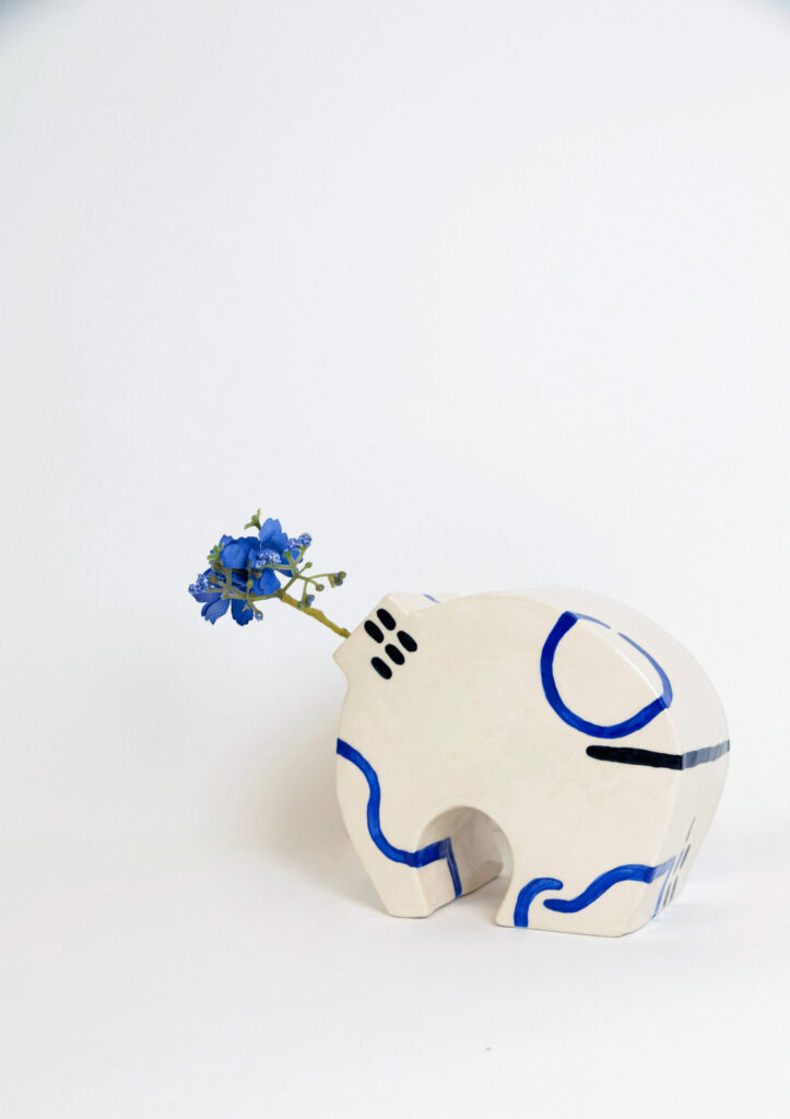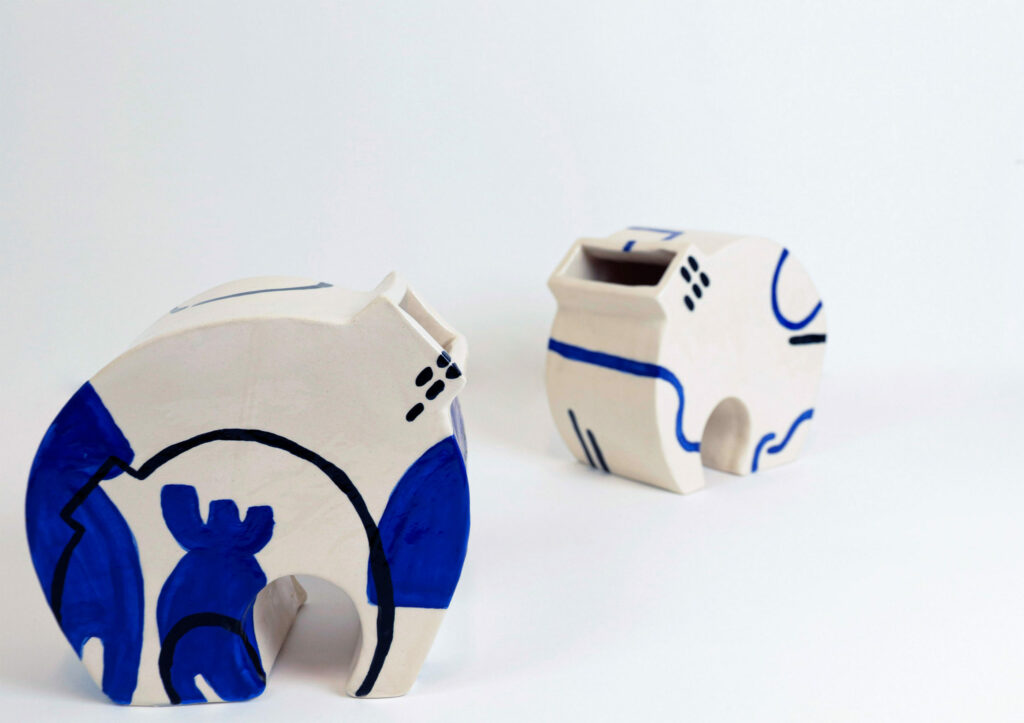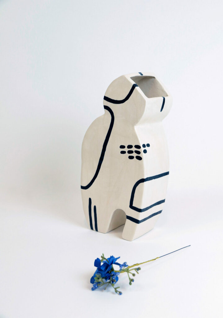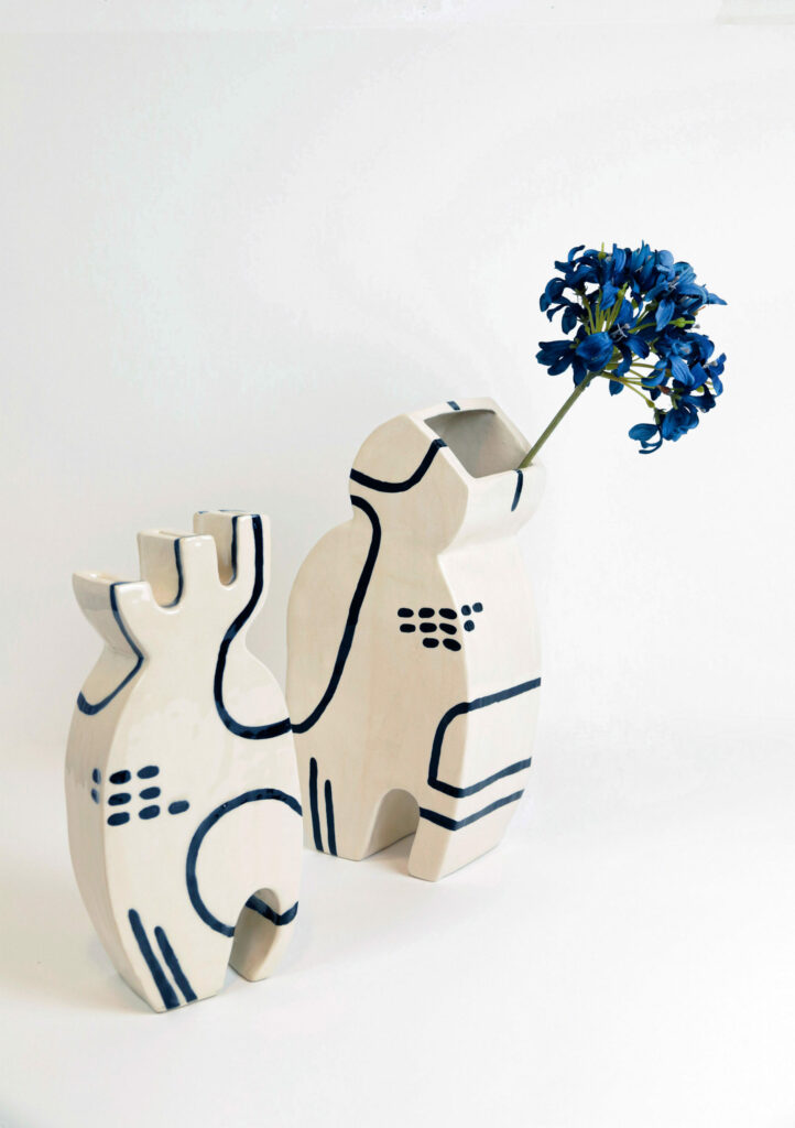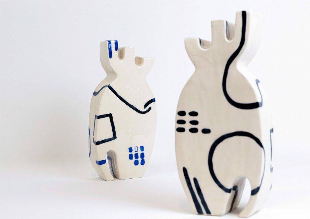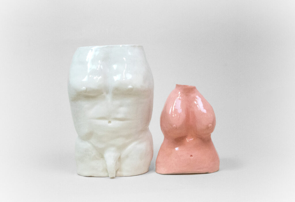 In her stand-up act ‘Nanette’, comedian Hannah Gadsby discusses Pablo Picasso’s misogyny, deriding his cubism as “putting a kaleidoscope filter on your dick; painting flesh vases for your dick flowers”. After initially considering what these would look like through a series of drawings and prints these ceramic “flesh vases” were made. The forms represent conventional Western beauty standards, with the male vase deliberately larger and more dominant. By removing the head, and turning the body into an inanimate, functional object, the human form is reduced to purely aesthetic qualities.