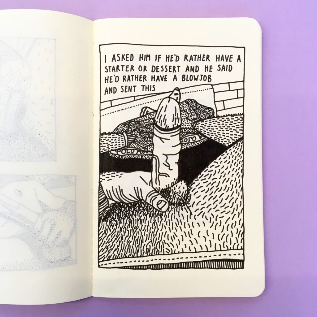 Drawing was always the starting point throughout the project, with sketchbooks acting as an archive of all the submitted images. Friends and complete strangers shared their varied stories with complete honesty, trusting in the artist as confidante.
