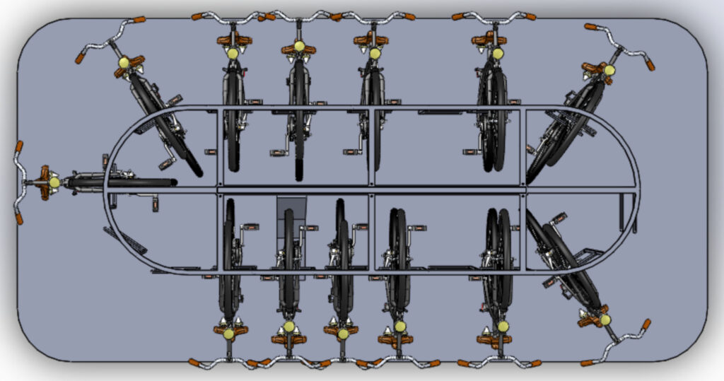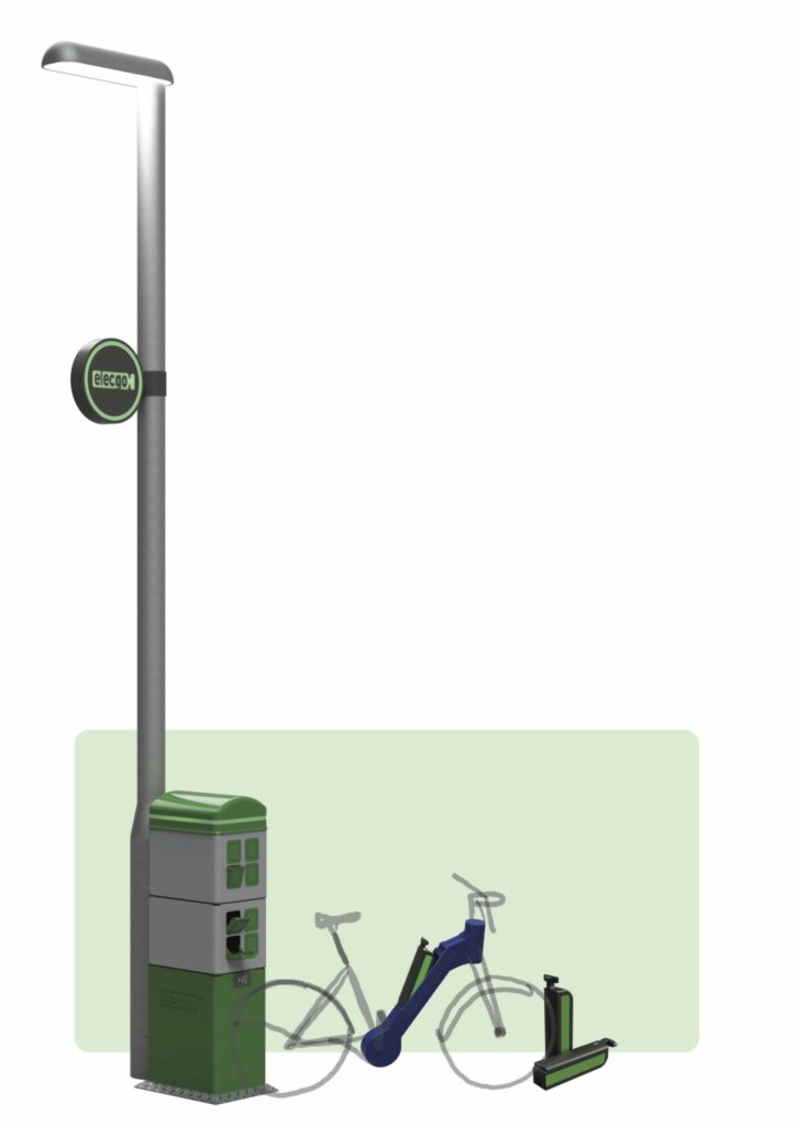 includes the modular charge station, the retrofitting battery to bike connector and the unique batteries designed for user handling.