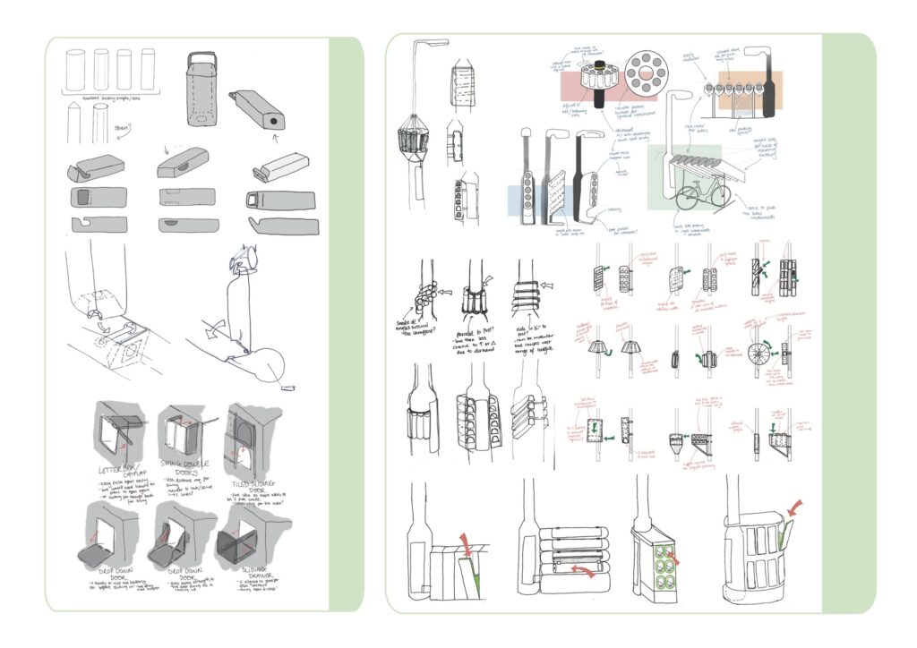 the batteries were modelled around the existing Edinburgh e-bikes the design alterations were minimal and only included to allow safe and comfortable user handling. The station concepts then iterated through different infrastructure connections, attachments and exchange interactions.