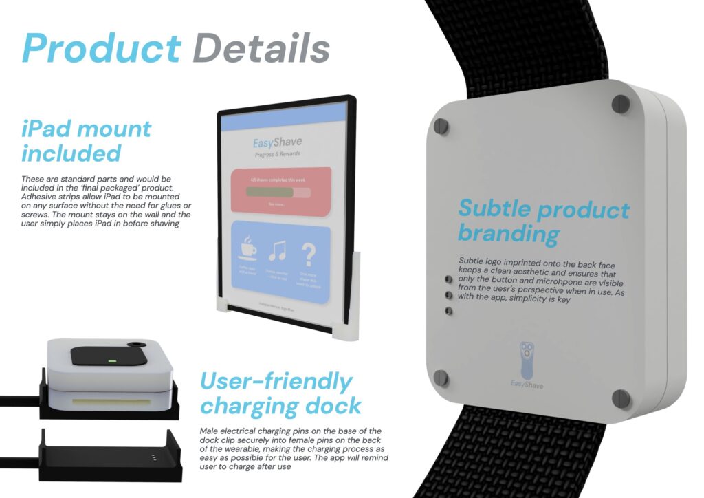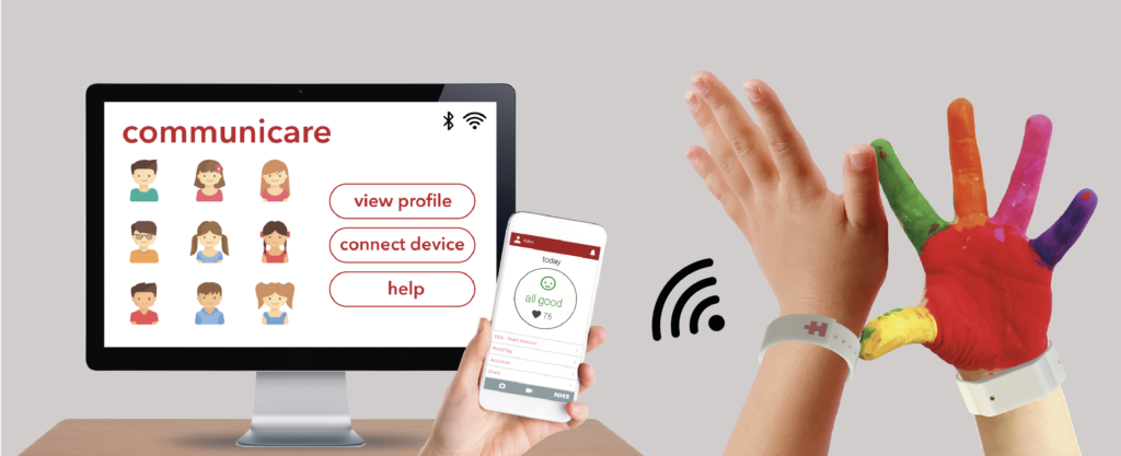 The ECG modules then send the ECG data to the Communicare application, which comes in both desktop and mobile forms. The application allows the caregivers (mainly teachers and parents) to monitor the child’s current stress level. On the wristband itself, the LEDs are shown, acting as a visual cue for the passer-by (who does not have the Communicare app). Overall, the product enables the detection of upcoming meltdown and shutdown of an autistic child.