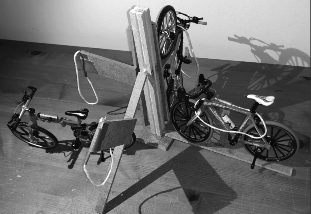 BICYCLE CLEANING AND MAINTENANCE PROJECT: SELF-CONTAINED BIKE STAND AND BIKE MAT FOR INDOOR USE.