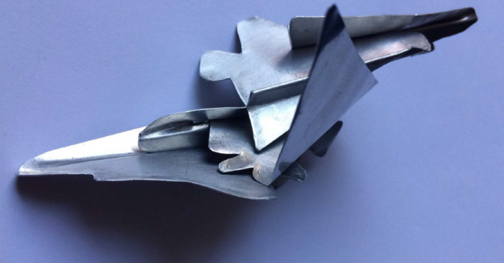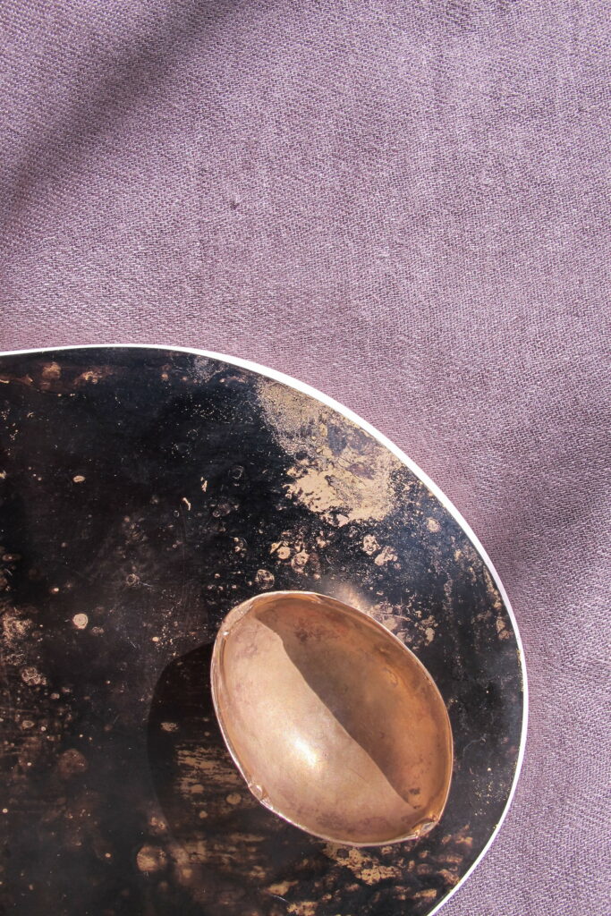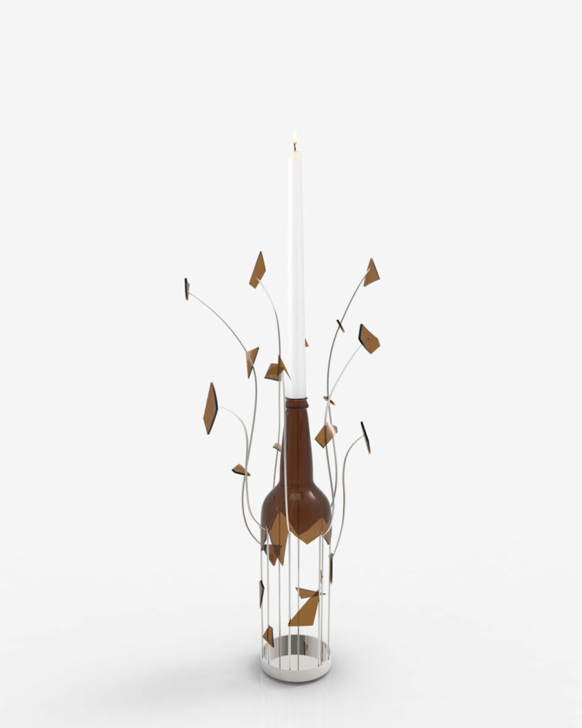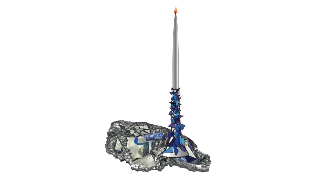 This design is inspired by Blue John Stone and is a collage of a copper sample, textured silver and titanium samples, and a design for a candlestick made in Adobe Illustrator. This design will be made in silver and titanium.