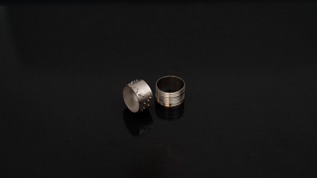 This shows how my samples in silver, niobium and titanium began to develop into finished pieces.