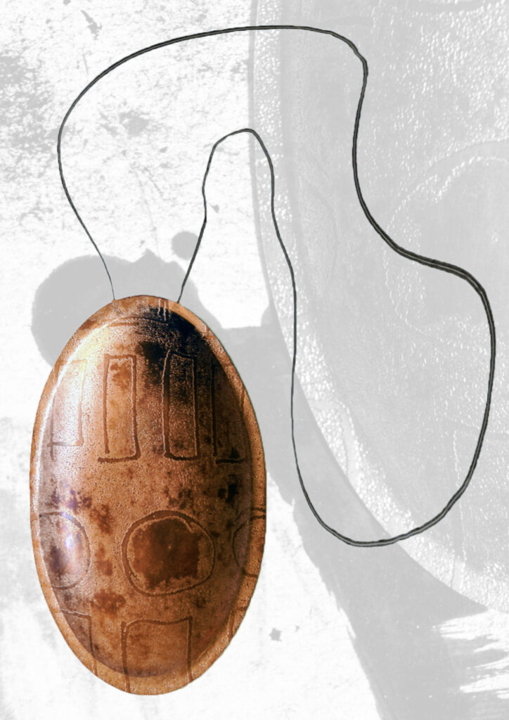 Detachable brooch, sustainable cork, acrylic, steel pins. Surface pattern hand drawn using pyrography method. 105mm x 65mm x 20mm