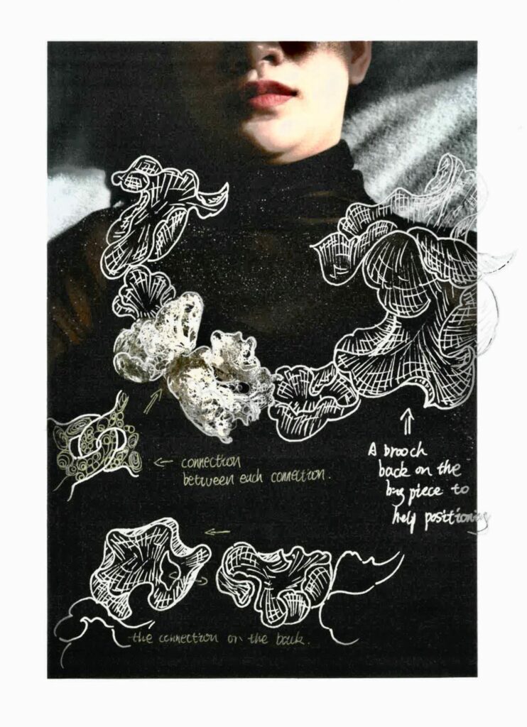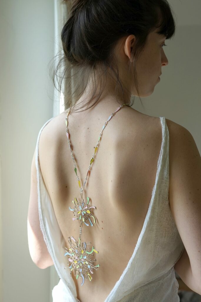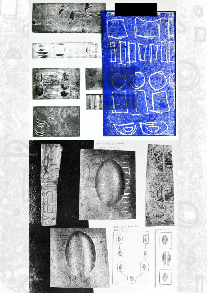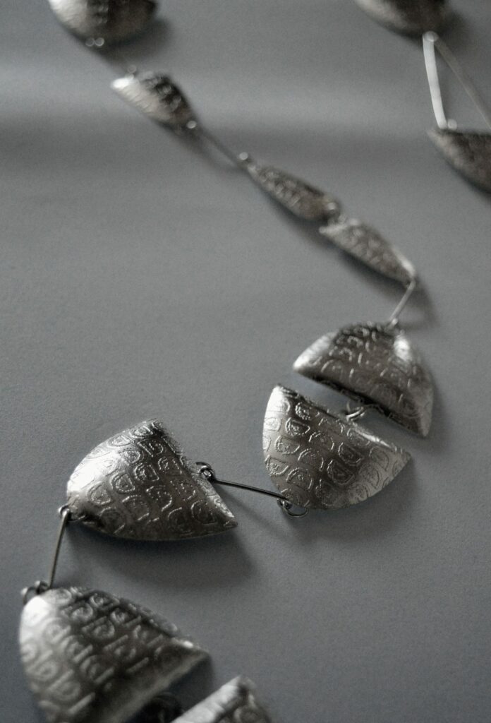 Necklace_oxidised silver with gold leaf / sketch of back side