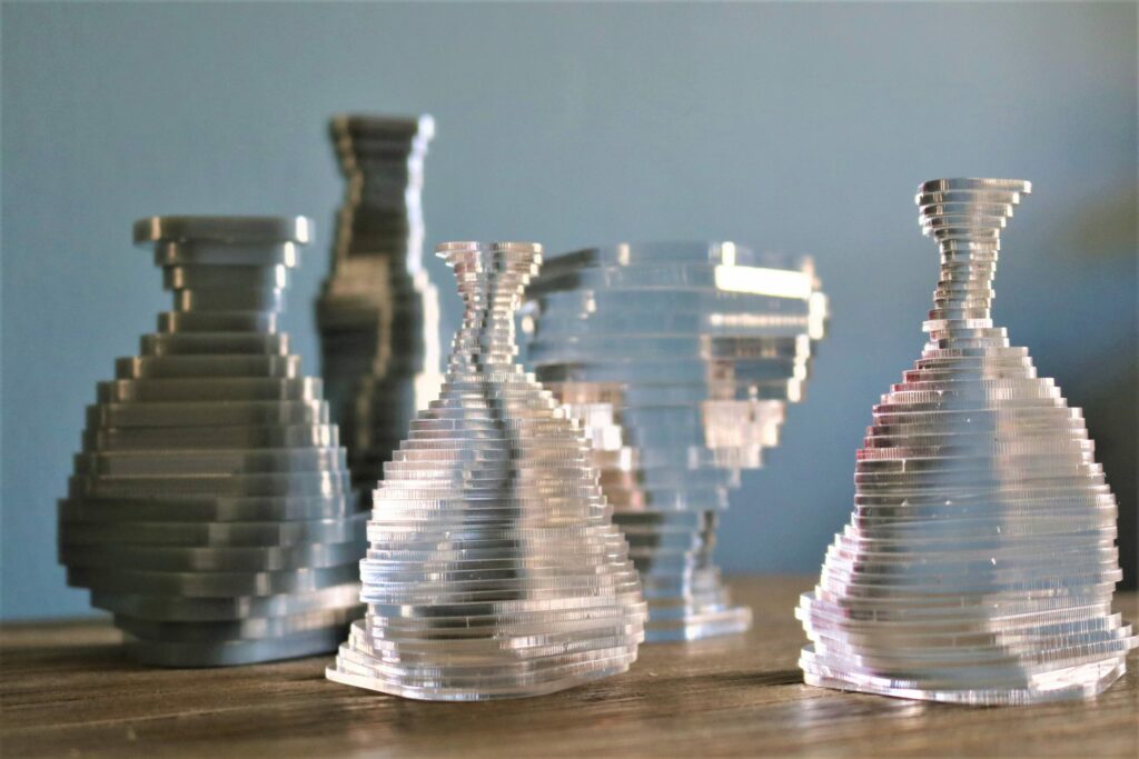 The notion of deconstructed vessels; re-constructed with laser cuttings.