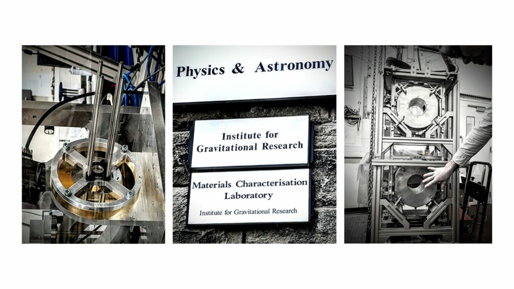 Research apparatus used in the detection of gravitational waves caused by exploding stars, observing the warping of spacetime. Photography taken during research visit to Glasgow University Physics and Astronomy Department.
