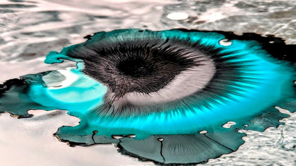 Photography documenting my process experimentation with Ferrofluid, Ink + Magnetic Forces