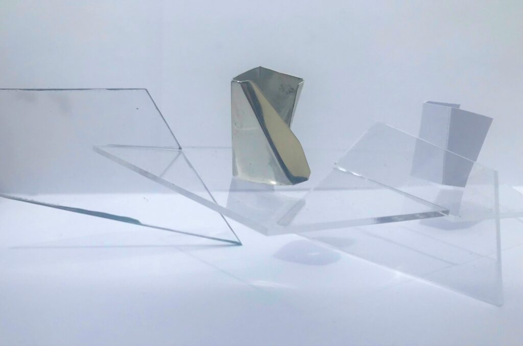 Laser cut Perspex and Jesmonite samples. Exploring Parametric Aesthetic.