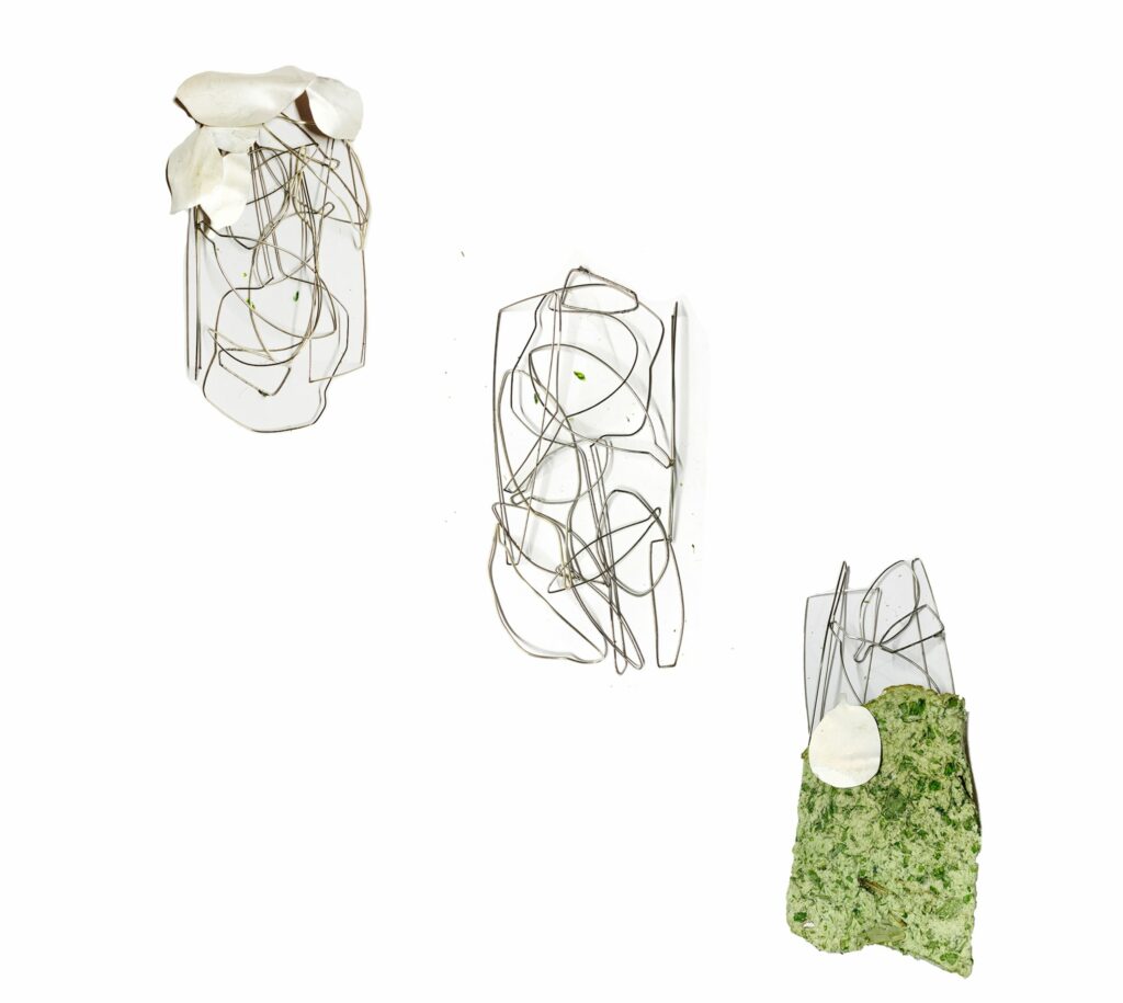 Set of three vessels. Silver, Perspex and Wire. Designs created using parametric processes and showing the evolution of traditional and modern technologies.