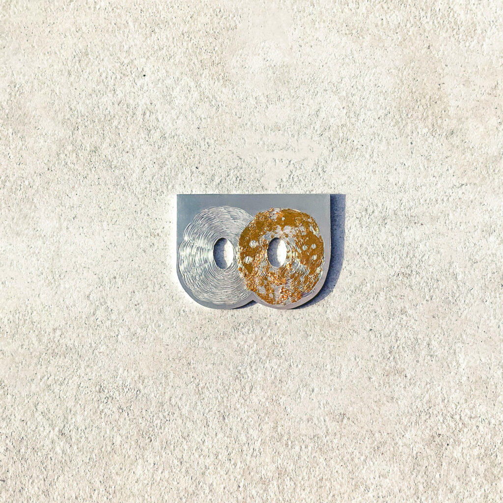 Brooch, Sustainable cork, laser rubber, steel pins, 80mm x 30mm