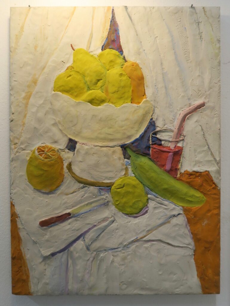plasticine on board, 30cm x 24cm-For this image, I made an interpretation of a still life painted by Fernando Botero. According to him, his chunky, voluptuous characters avoid being fat, instead “they're exaltation of form and volume” that I see as clearly relating to more classical ways of painting, particularly Picassos 1920's beach period that I love. Apparently, his real inspirations come from the Renaissance era and in his early career especially, he was very fond of Piero Della Francesca too. I thought it fitting to use one of his images “Still Life 1998” since its physical tangibility is similar to the nature of his work which relies so much on volume and weight of form. I asked myself, how can I justify making a version of the artist’s work? Botero made re- appropriated images of Renaissance art, so I make re-appropriated images of his.