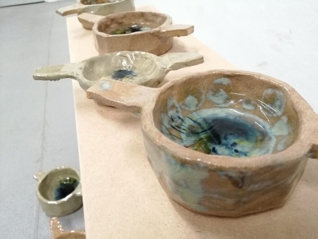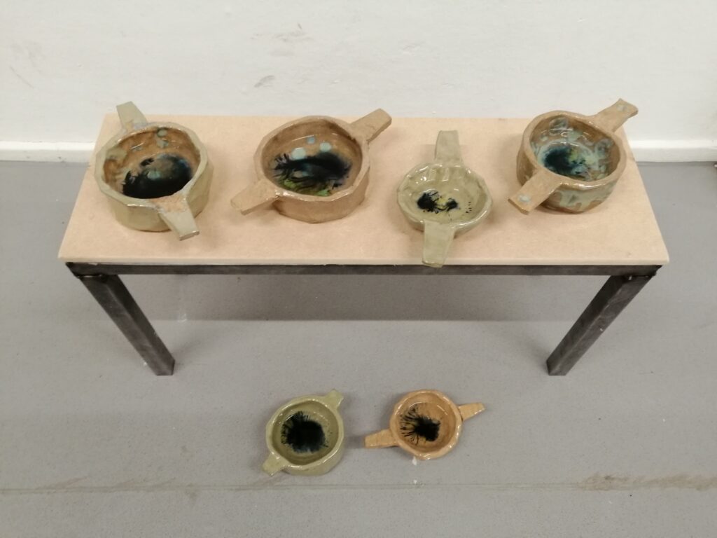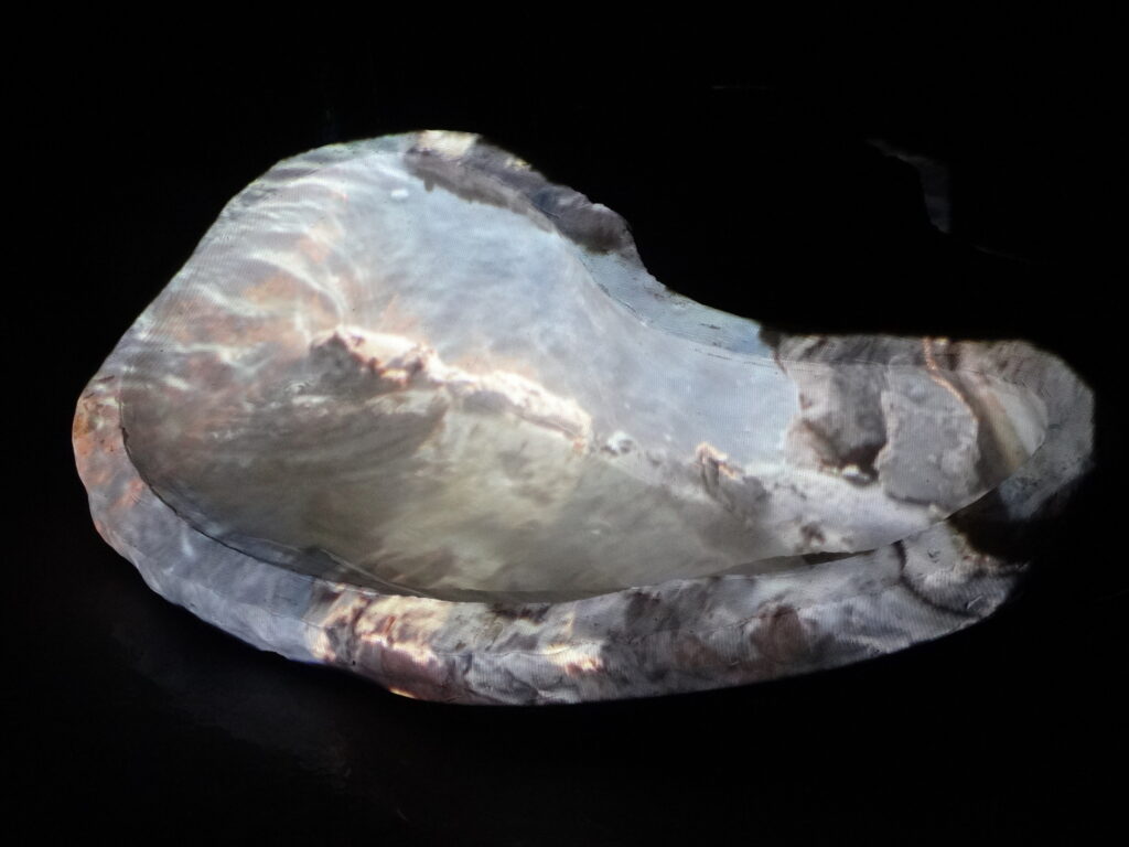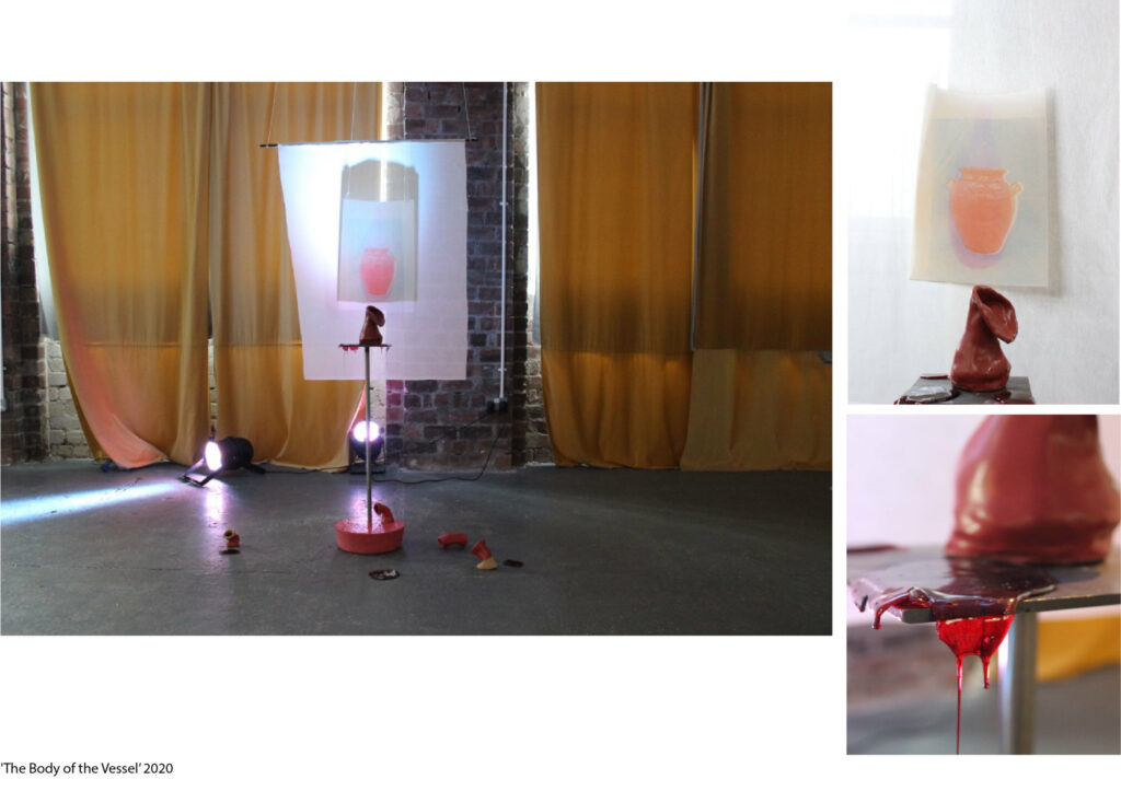 This work came about after reading Ursula Le Guin’s essay ‘A Carrier Bag Theory of Fiction’. Within the essay, Le Guin examines how we are fed a narrative of the hero within our understanding of history. We are more likely to hear tales of war and conquest than the stories of the day to day life. Within the more domesticated side of history is written a story of collaboration, with each other but also in negotiating the environments we have found ourselves in. Whilst we look at the tools of war in our history, we sometimes dismiss the role of tools such as the bowl, which allowed us to transport water from source to home. The bowl allowed us to contain water, something that, in its natural state, cannot be held and even though contained continues to flow and react to the environment around it.