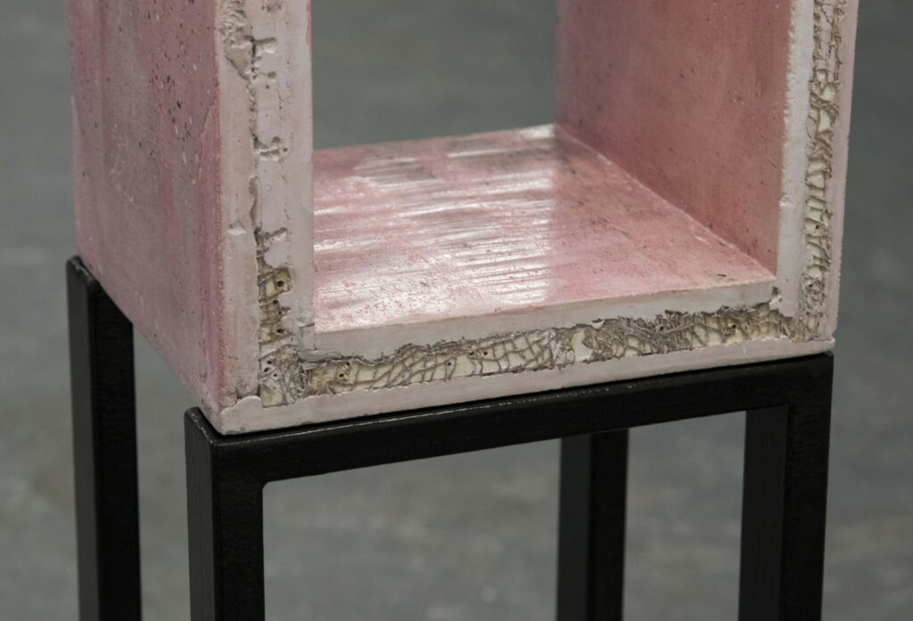 Nothing Wrong Is With Me (Detail) 2020 300 x 330 x 1750 mm Found Kitchen Cabinet, Skrim, Plaster, Pigment, Wax, Concrete, Steel, Paint.