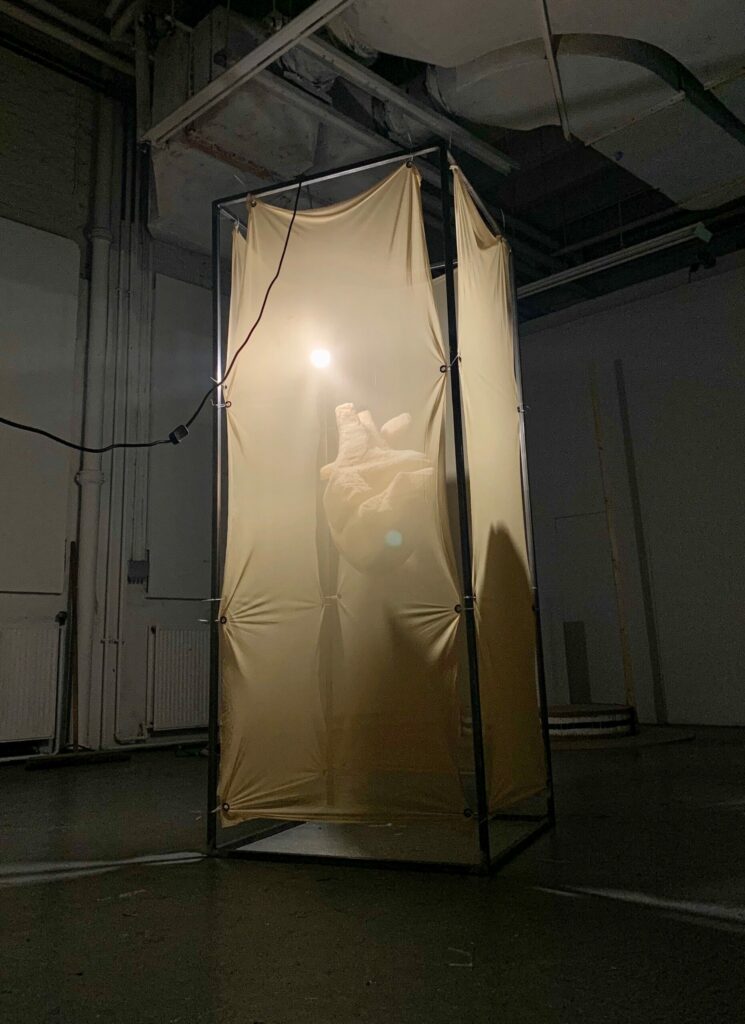 A space blanket offers basic thermal insulation for those suffering from hypothermia and £36.95 is deemed the absolute minimum for financial survival for Asylum Seekers in the harsh realities of UK economy. I wanted to juxtapose these ideas to create work that highlighted this inequality. The inflated structure is made from £36.95 worth of space blankets and insulating tape.