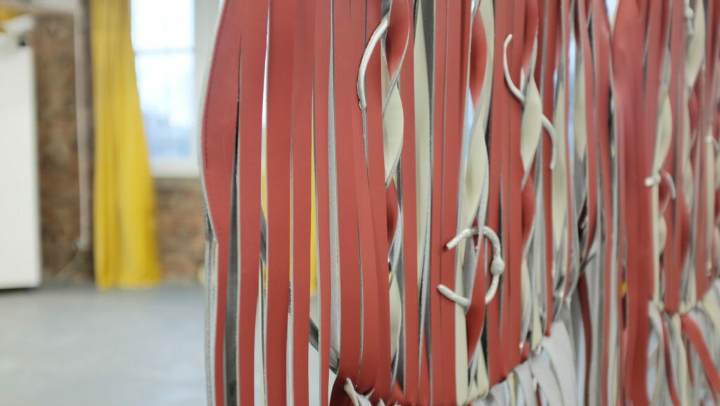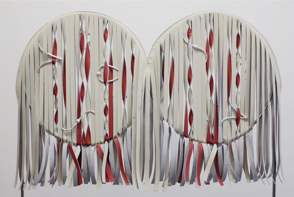 hand loomed beads that were attached to the artists body for a performance and ripped of during the dance.