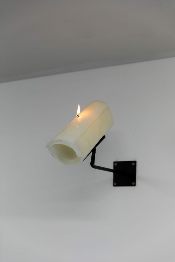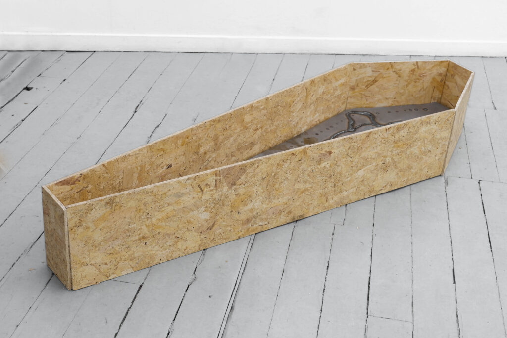 Repurposing found street refuse, Kitchen Cantilever and Nothing Wrong Is With Me employ quotidian materials and processes in order to re-examine notions of utility. Submerged and camouflaged, these un-ostentatious forms serve to undermine the traditional fine art object, exploring concepts of value, identity and labour.