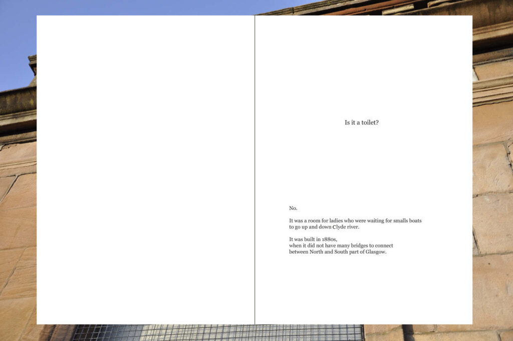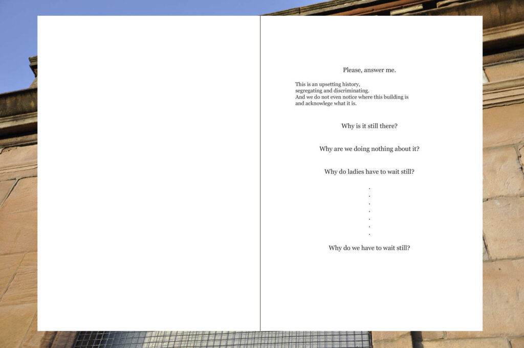 In response to the gentrification of Glasgow’s East End, ‘It’s All Wallpaper and Carpet Shops Now’, used materials, household paint, wallpaper, vinyl tiles, bought in the local area and installed on the external walls, to highlight the loss of social housing in Glasgow.