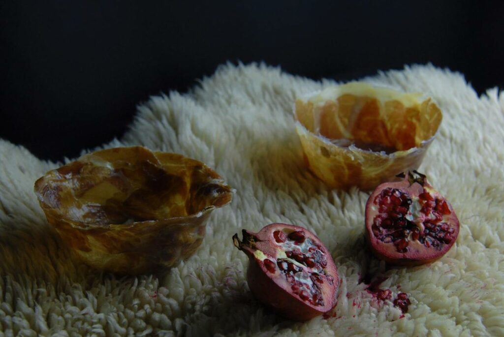 meat, glue, pomegranates