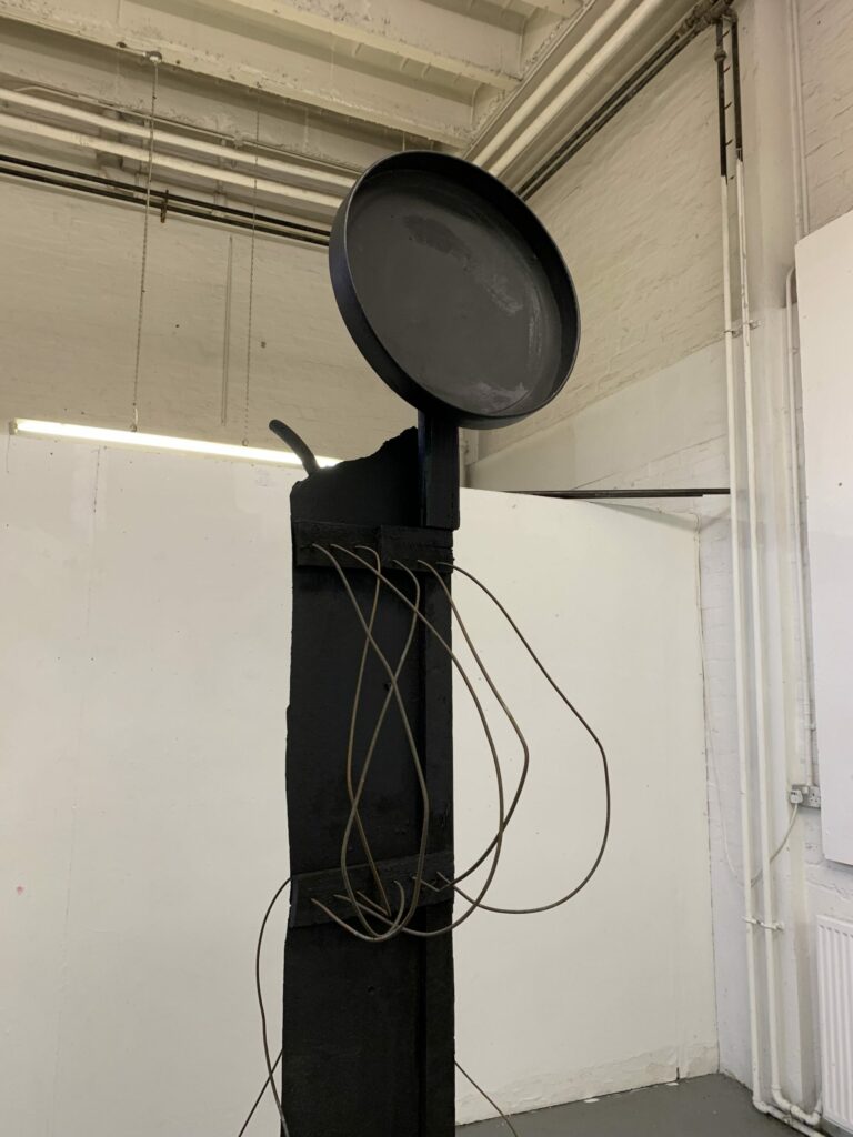Existing somewhere between a pseudo sci-fi film prop and a ruined monolith, How Can It Not Know What It Is? explores ideas of failed utopias, masculinity and antiquity. Rusty, hairy and only half illuminated, it doesn't quite shine bright enough or stand tall enough.