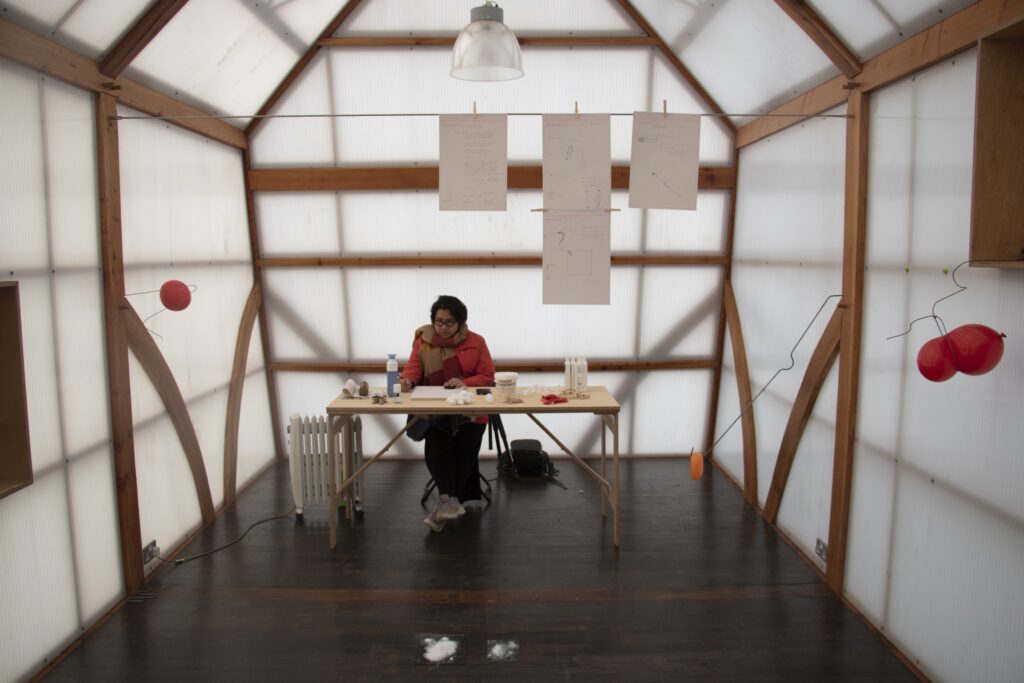 Each year staff in Sculpture & Environmental Art (SEA) welcome into the Department a new cohort of students keen to learn the material language of our two programmes: that is, sculpture itself; and approaches to spatial practice relevant to working in social contexts. When material sculpture meets with the world of ideas, the possible environments, contexts and audiences for the work become dynamic elements within contemporary spatial practice. As well as developing independent projects in settings where art doesn’t normally exist, this year students completing their Honours degree in SEA have also had the chance to make work with a range of external partners to whom we are really grateful: Pollok House, Projectability and Platform in Glasgow; Pig Rock Bothy project at the Scottish National Gallery of Modern Art, in Edinburgh; the Woodlands Trust at Lang Craigs; and with two new partners – The Hidden Gardens at Tramway and Art in Hospitals. These opportunities have given the students invaluable experiences, professional support and, most significantly, helped shape their practice. We are really grateful to all these organizations for supporting the students and the Department in this way.