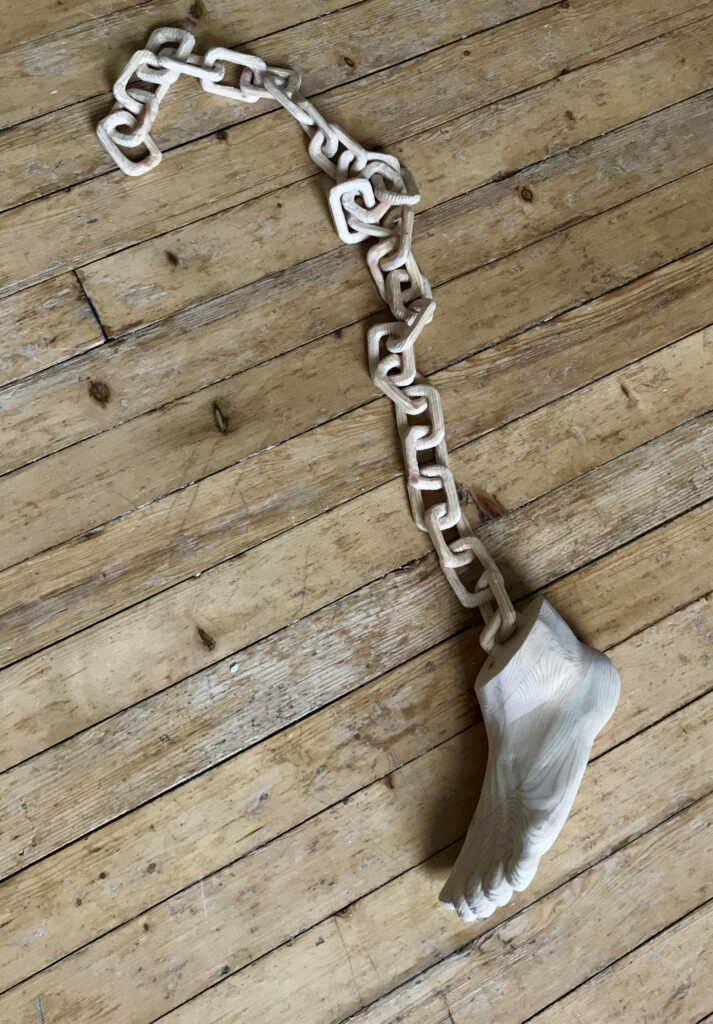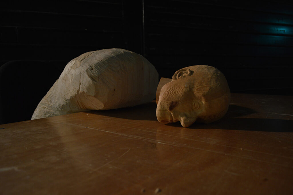 Untitled work in progress carved during COVID-19 lockdown. [Carved recycled industrial pine.]
