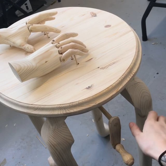 Carved during COVID-19 lockdown. [Carved recycled industrial pine and brass handle.