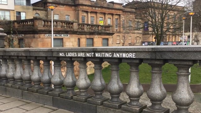 Three different brown road signs installed in three sites: Scott Street, Civic Street, and Spiers Wharf. The brown road signs, which in Scotland highlight places of cultural or historic significance, indicate the viewers distance to three infamous sites in Scotland, all within a 70-mile radius of Stow College.